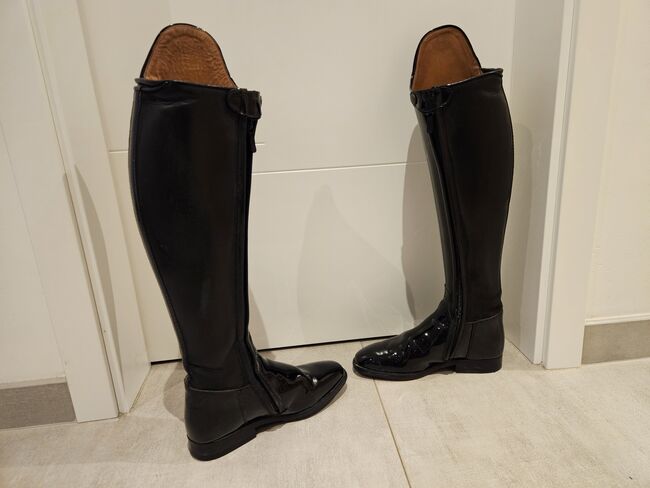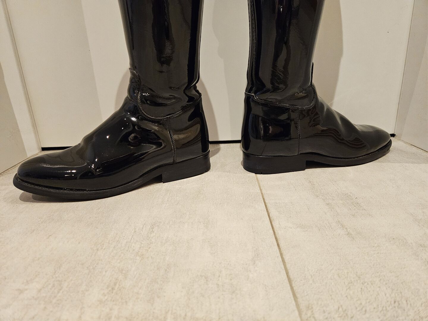 Vackra dressyrridstövlar i lack, Petrie - Säljer mina vackra lackstövlar för dressyrridning av märket Petrie.