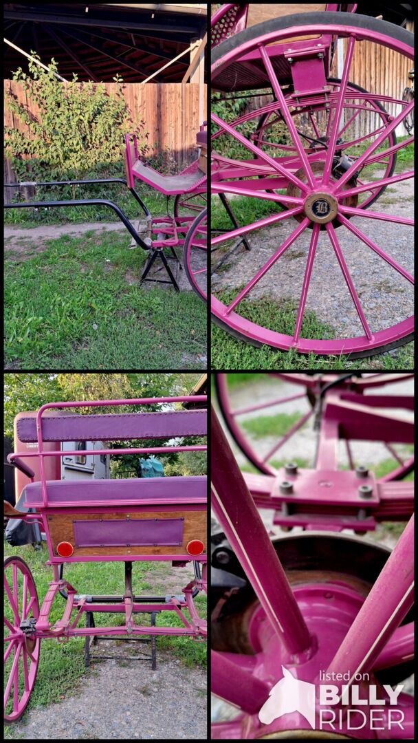 Väl underhållen gig sulkyvagn för hästar från 150 cm - Säljer min välskötta stora gig sulky vagn för hästar. Stod alltid torr och täckt, har servats regelbundet inklusive bromsar. Har aldrig körts i regn. Väl fjädrad. 90 cm vagnshjul, spårvidd 1,30 m, med skivbromsar och MZ bromsok. Fotbroms och parkeringsbroms. Bak- och sidostrålkastare, lamphållare, piskhållare. Sittbredd 1 m, justerbar, sitthöjd 1,20 m. Färglöst lackerade trädelar, stänkskärmar för stänkskydd. Bred sax/landning, steglöst justerbar i längd, även bred och smal för stora hästar. Lem 85 cm. Hästens höjd från ca 1,50 till max 1,70 m. Sittbänk med ett litet förvaringsutrymme. Två extra T-balkar 9 cm för att ändra sitthöjden. Passar i en normal hästvagn. Endast upphämtning. 1000 € VB. Om du är intresserad eller vill ha en offert +49 17621110466