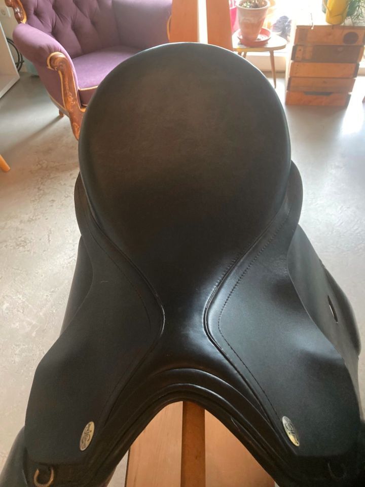 Väl underhållen VS sadel Jorge Canaves 17,5 tum KW31 - Lädersadeln är begagnad men mycket välskött och i mycket gott skick (se bilder). Vi har precis fått den från sadelmakaren, men jag är övertygad om att den inte sitter ordentligt på vår Tinkerponny, så tyvärr måste den flytta. Alla 4 pommels är avtagbara. Den har en ullfyllning så den kan passa bra. Vecka 31, om det är något som behöver mätas, säg till! :-)