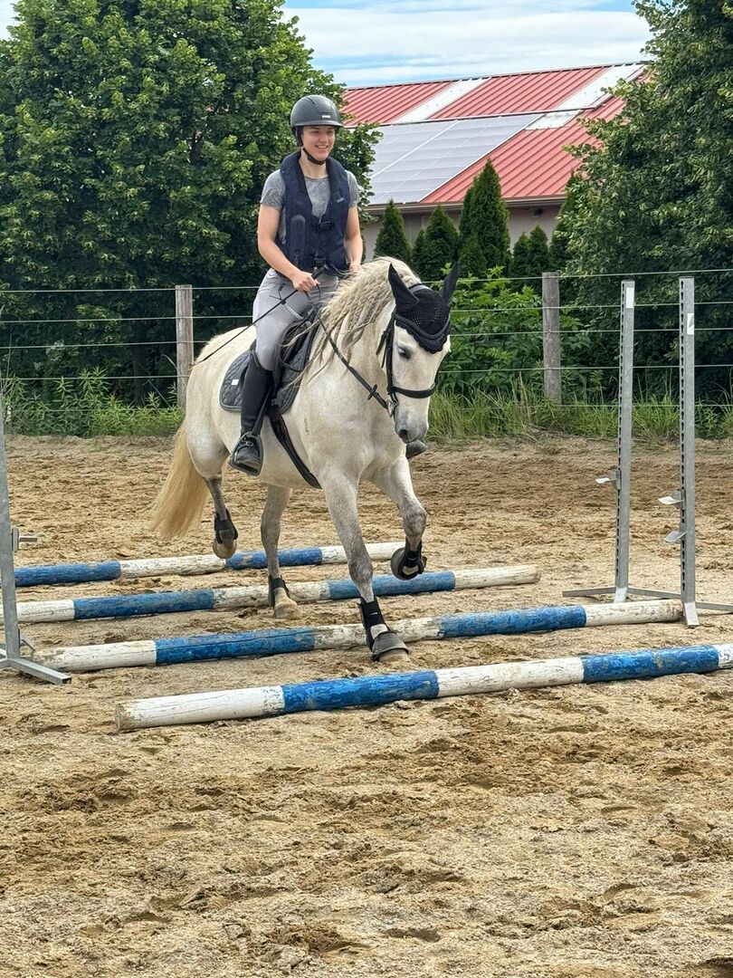 Vänlig andalusier - Om allt passar kommer jag att ge bort min underbara och vackra andalusiska valack. Han är människoorienterad, vänlig och alltid redo för lite kul - en liten allround. Dressyr på A-nivå (började lektioner på L-nivå) och mycket bekväm att rida. Har också hoppats regelbundet, där han visar talang men kan bli varm och behöver tydligt ledarskap. Gillar mycket arbete från marken, kan göra en del cirkuskonster. Gillar att gå ut på fältet, ensam och i grupp. Typiskt temperamentsfull och känslig, därför inte en nybörjarhäst. Han vill bli arbetad regelbundet och rättvist och behöver sin ägare och en mängd olika aktiviteter. Okomplicerad i hantering, hos veterinären och vid lastning. Kommer också bra överens med andra hästar. Naturligtvis regelbundet vaccinerad, avmaskad och hade sina tänder gjorda. Han är för närvarande skodd framtill. Olika tillbehör kan köpas efter överenskommelse om så önskas.
