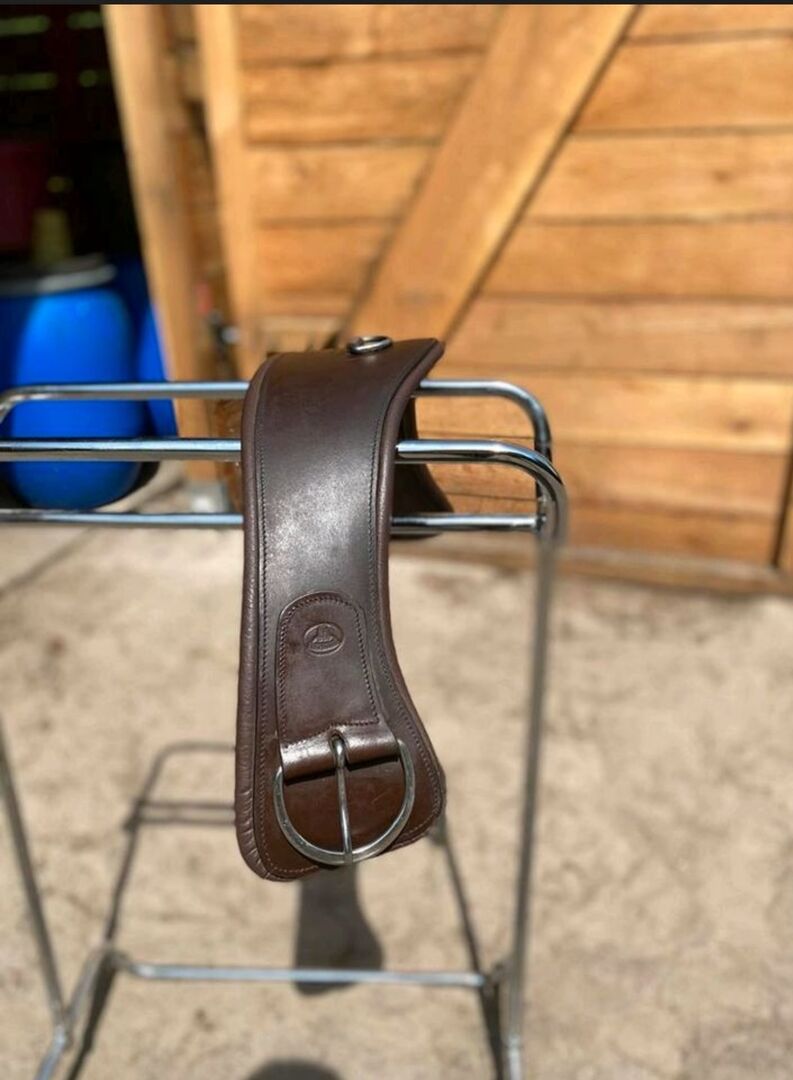 Västra omkretsen är ergonomiskt formad - Försäljning på grund av felköp. Längd 28 tum. Har suttit på hästen 4 gånger. Läder med gel för komfort. Den ergonomiska formen ger ett balanserat tryck. Super omkrets tyvärr passar den inte oss....