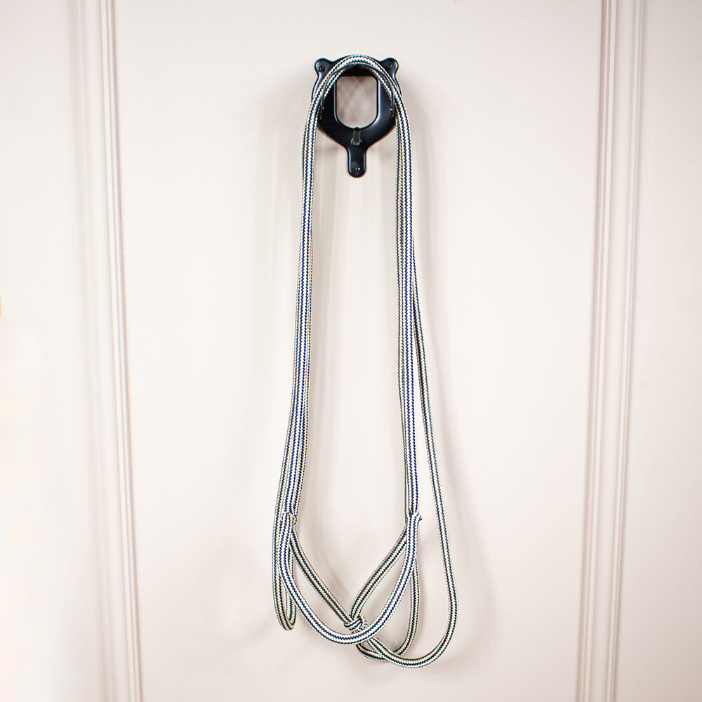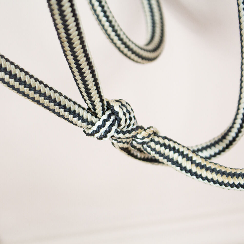 Vandringshalsband med tyglar svart/vit VB - Det svartvita halstret med tyglar är i fullblods storlek. Den har integrerade och stängda tyglar. Halstret har en diameter på ca 1,4 cm. Den är i gott skick och har endast en liten missfärgning. To the seller's offerlaunch