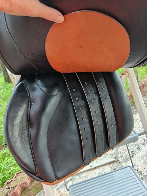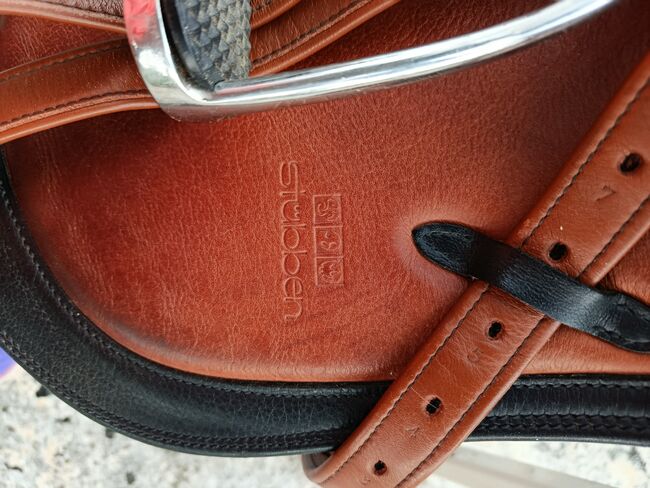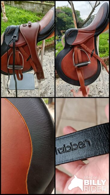 Varumärke Stübben: hoppsadel, sadelgjord, martingal, stigbyglar, stigbyglar läder - som ny, nästan oanvänd, martingalen är ny, sadelgjorden 135,Priset är för sadeln och alla tillbehör.