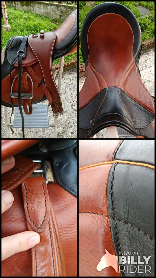 Varumärke Stübben: hoppsadel, sadelgjord, martingal, stigbyglar, stigbyglar läder - som ny, nästan oanvänd, martingalen är ny, sadelgjorden 135,Priset är för sadeln och alla tillbehör.
