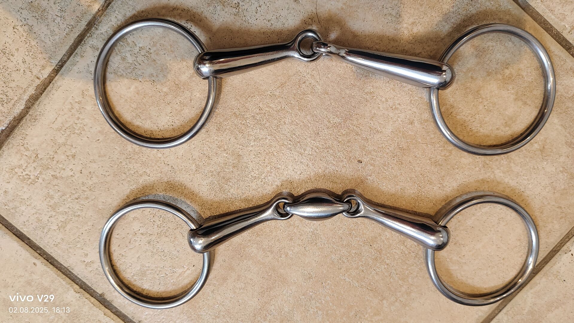 Vattenträns, enkelbruten 13,5 cm och dubbelbruten 14,5 cm - Båda bitarna är tillverkade av rostfritt stål och i mycket gott skick! Inga bitmärken, vassa kanter etc. Har rengjorts minutiöst. Pris per bit. Privat försäljning därför ingen garanti, reklamation eller retur.