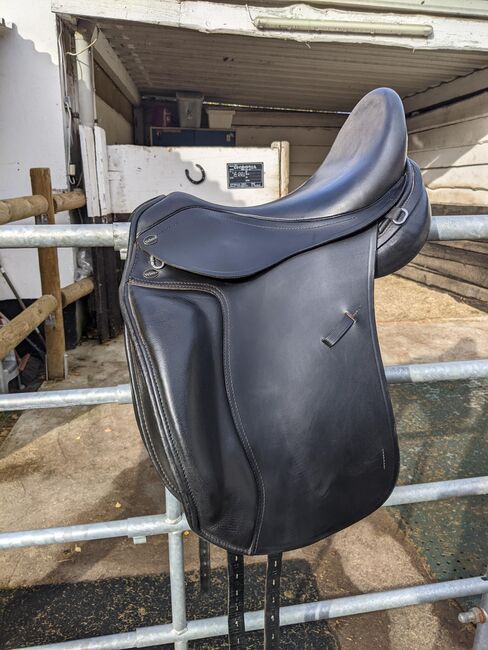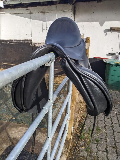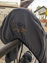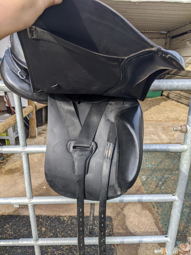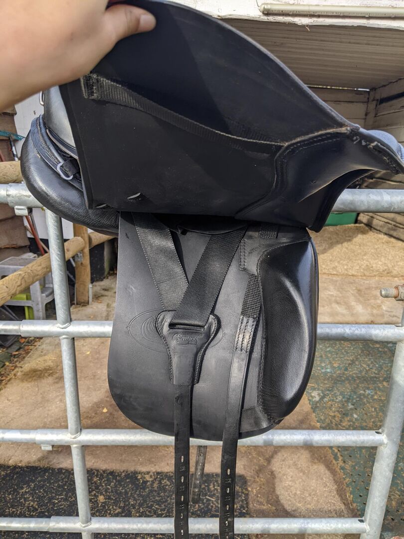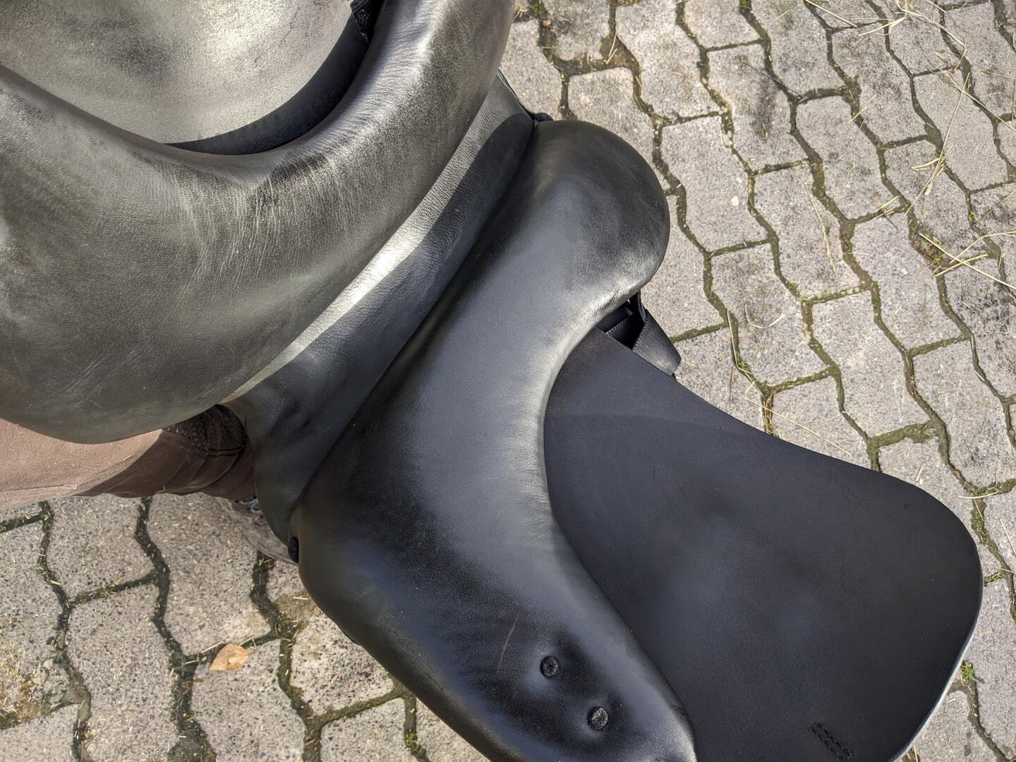 Jag köpte sadeln av en sadelmakare i juli i år. Flikarna är ordentligt sydda och man sitter väldigt bekvämt och säkert i den. Den är i mycket gott skick, har alltid skötts omsorgsfullt och har alltid hållits torr. Den är nysmord på bilderna, vilket är anledningen till att den fortfarande är lite blank.