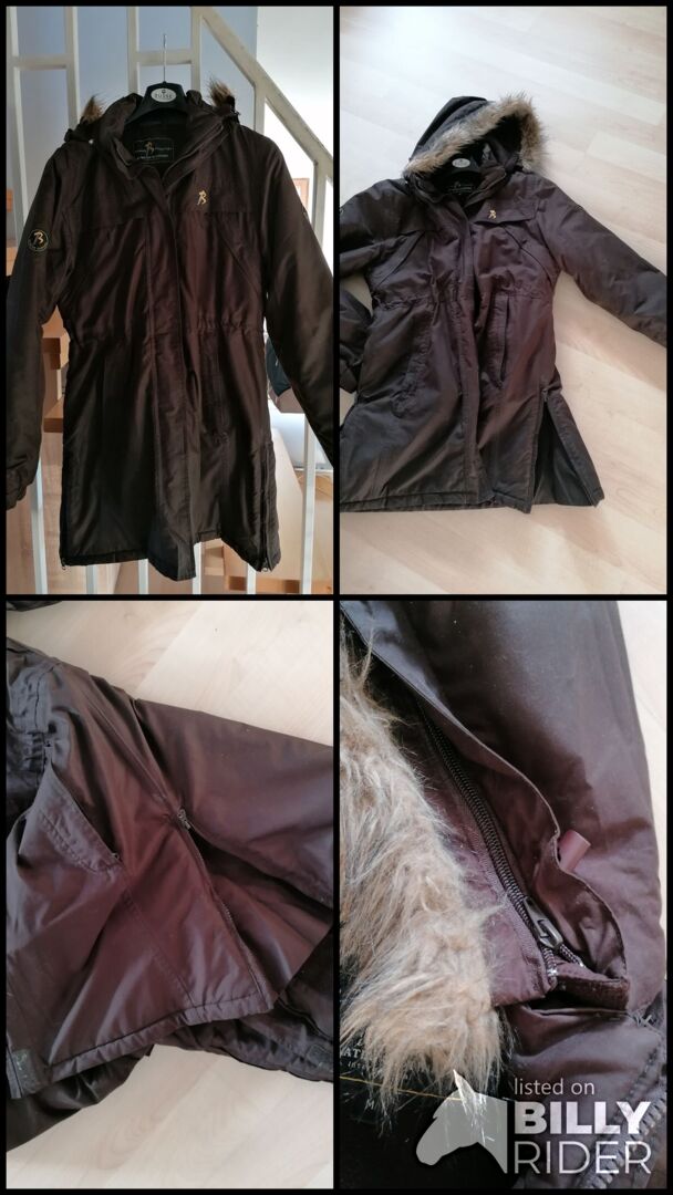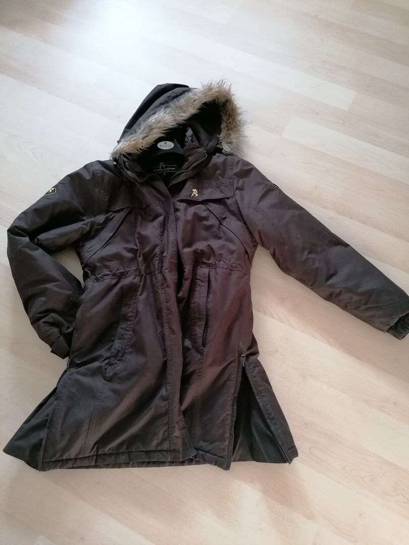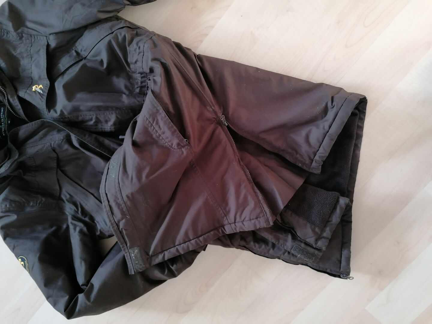 Vinter ridrock storlek M - Knappt använd vinterridrock. Huvan kan tas av med tryckknappar eller stoppas i nackfickan. Midjan kan dras åt eller vidgas med hjälp av en dragsko. Alla dragkedjor och kardborreband är av högsta kvalitet. På sidorna kan du förlänga rocken för ridning med slitsar. (med dragkedja) Eftersom detta är en privat försäljning är inget utbyte eller garanti möjligt.