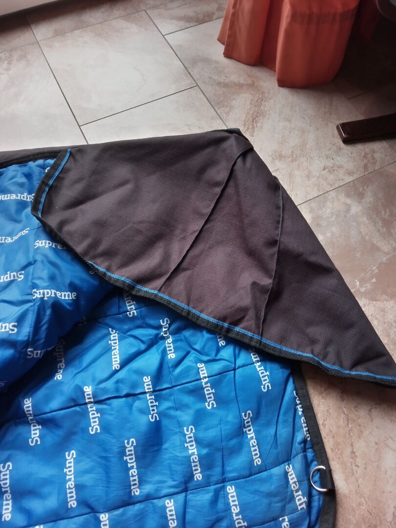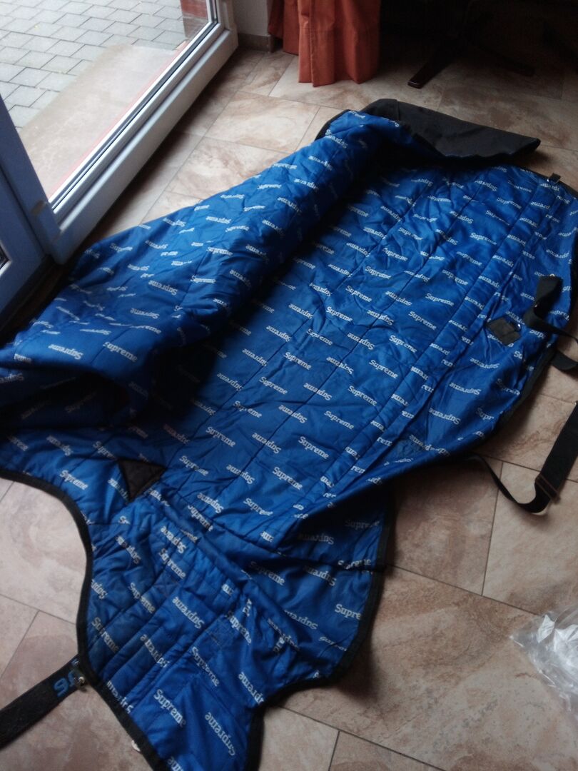 Vinterbetesdynan 135 cm - Fodrad matta, robust yttermaterial. Hög hals och två breda T-bystslutningar som är lätt justerbara. Nylonfoder - mycket pälsvänligt. Vattentät och andningsbar (två små hål som inte störde mig). Kan användas med cykelsele Rep. Svansluckan är extra stor och kalsongerna är generöst skurna för optimal rörelsefrihet. Fyllning av filten 200-250 gr. Den rengjordes professionellt för 15 €. Jag har PayPal och ser fram emot förfrågningar.