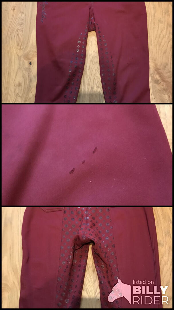 Vinterbyxor - Full grip breeches I färgen vinröd och storlek 42. Det finns en liten defekt på vänster lår som hände mig första gången jag bar dem (se foto). Mycket lite slitna. Byxorna säljs tvättade.