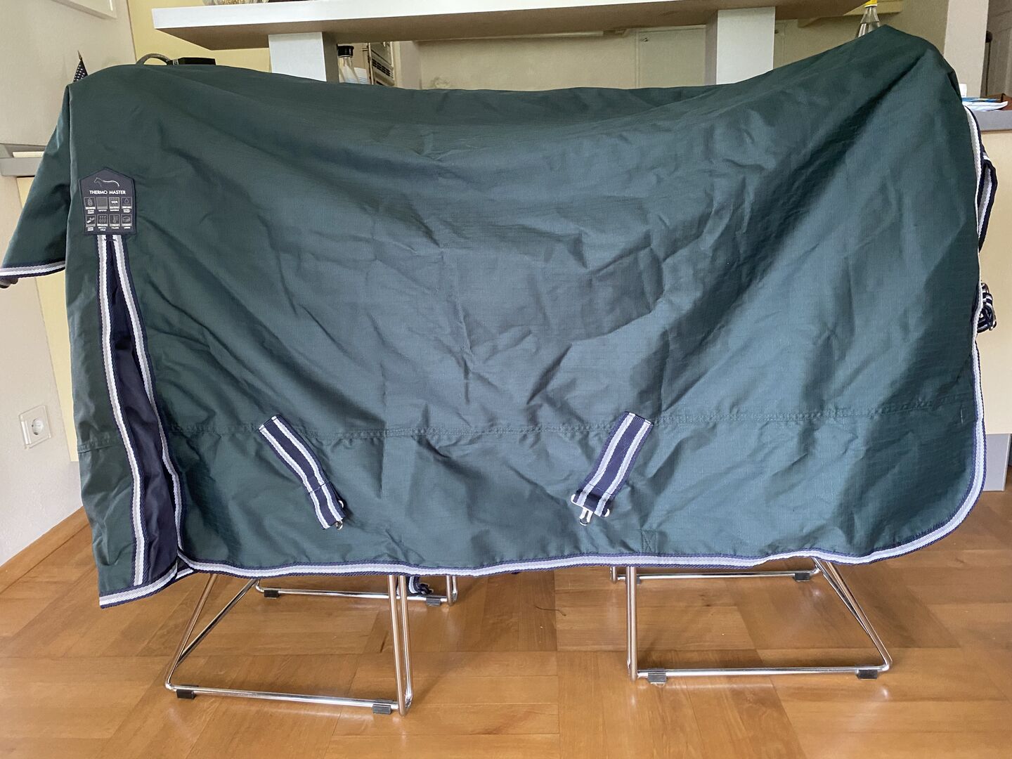 Vinterfilt häst/pony - Vinterfilt från företaget Thermo Master 100g till salu. Den var bara på hästen för en montering. Tyvärr är den för liten. Inköpet skedde förra året, och därför är det inte möjligt att återlämna den.