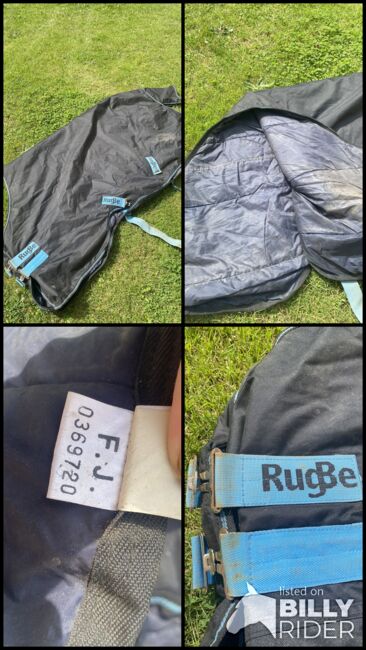 Vinterfilt RugBe 125cm 200g - Hej, jag säljer denna vintermatta (utomhusmatta) med 200g fyllning i 125cm. Täcket har legat i garderoben i några år nu... allt är fortfarande intakt, och det har knappt varit på hästen. Fästanordningarna har blivit rostiga (se bilder)
