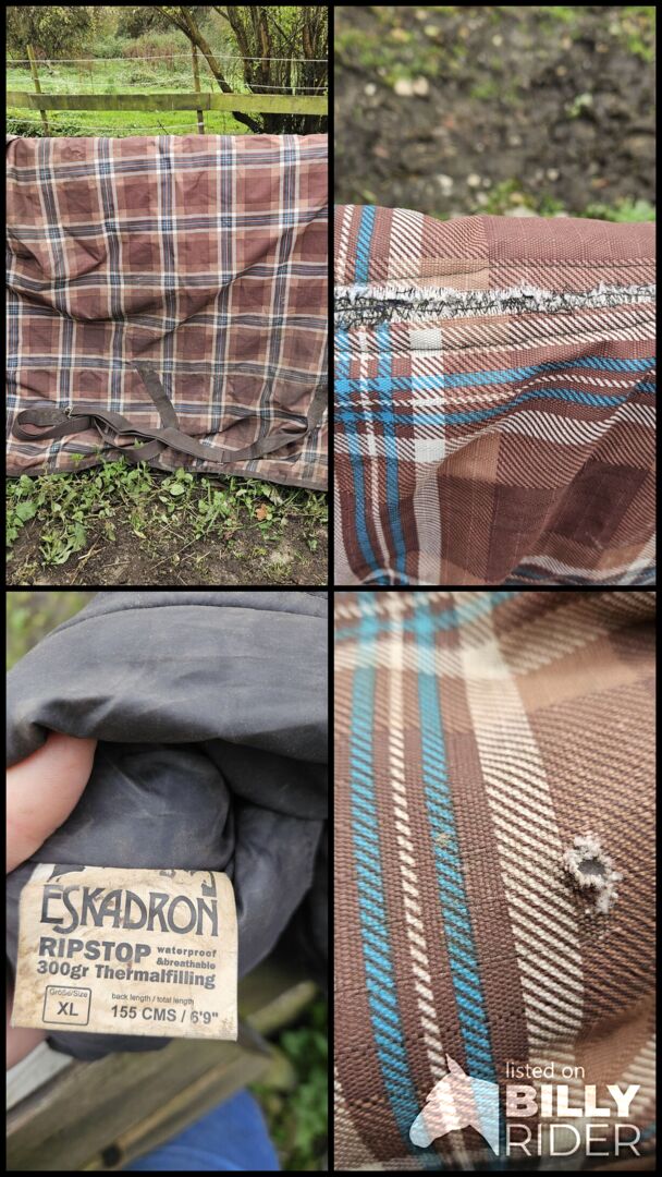 Vintermatta, Eskadron, 155cm, 300g - Jag säljer en begagnad vintermatta från Eskadron. Storlek 155cm, 300g, vattentät. Brun rutig. Den är redan några år gammal och har några små trasiga partier, men dessa är ytliga och påverkar inte dess funktion. Den har sytts vid manken. Inga benremmar. Täcket är inte tvättat före försäljning. Om utseendet inte är så viktigt för dig är denna matta fortfarande helt adekvat.