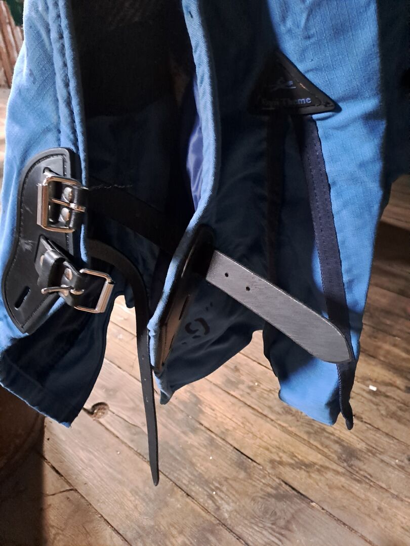 Vintermatta med ullinlägg 155 cm Equi Theme - Begagnat vintertäcke till salu då det inte passar min nya häst. Det är ett stabilt vintertäcke med ullinlägg. Istället för de vanliga spännena är täcket stängt med läderremmar. Det har justerbara benremmar baktill och 2 magremmar. Mattan är i gott skick. Den har tvättats och desinficerats.