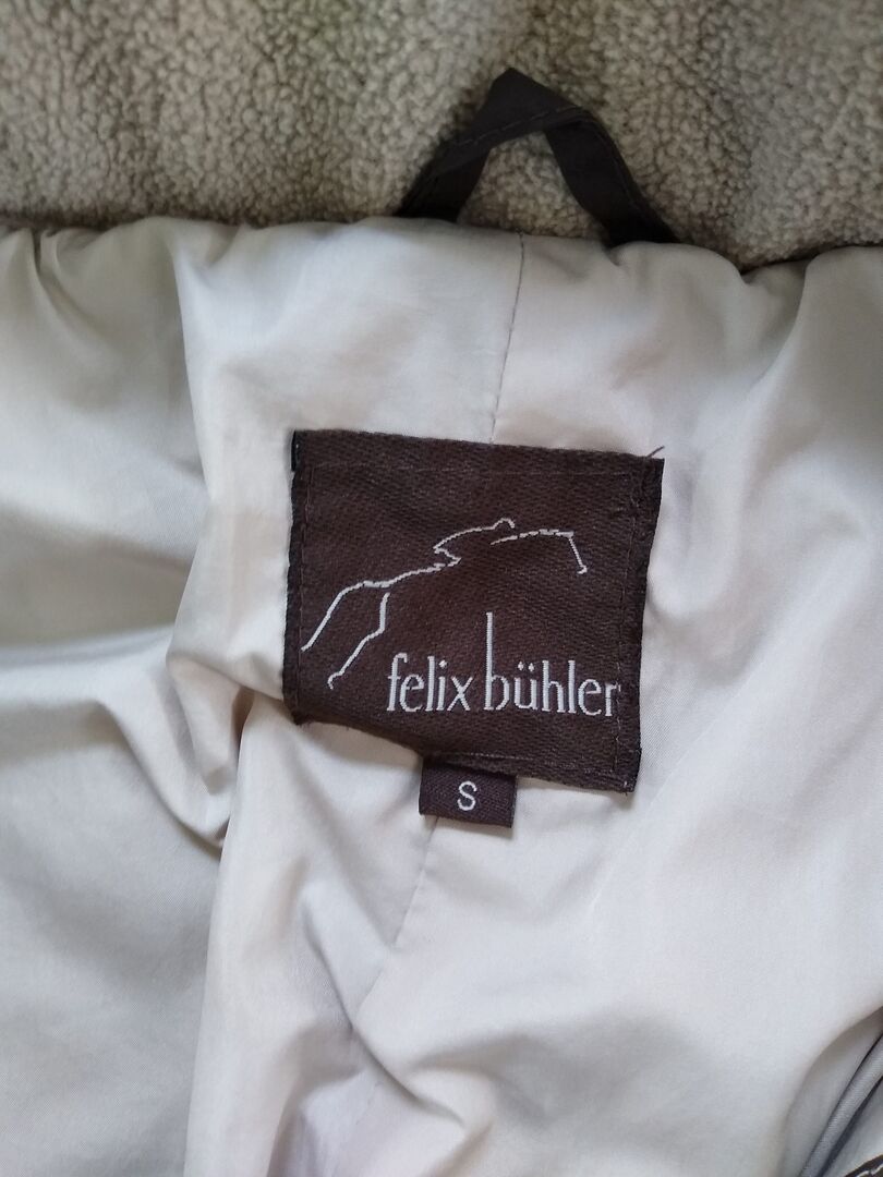 Vinterridningspäls "Felix Bühler" storlek S (går större!) - Jag säljer min vinterridrock från Felix Bühler i storlek S, färg brun. Den är supervarm, har en huva, snöbrickor på ärmarna, en lång slits (som kan stängas med en dragkedja) i ryggen (så att du kan rida bra i den) och 2 fickor med dragkedja. Den är vind- och vattenavvisande.