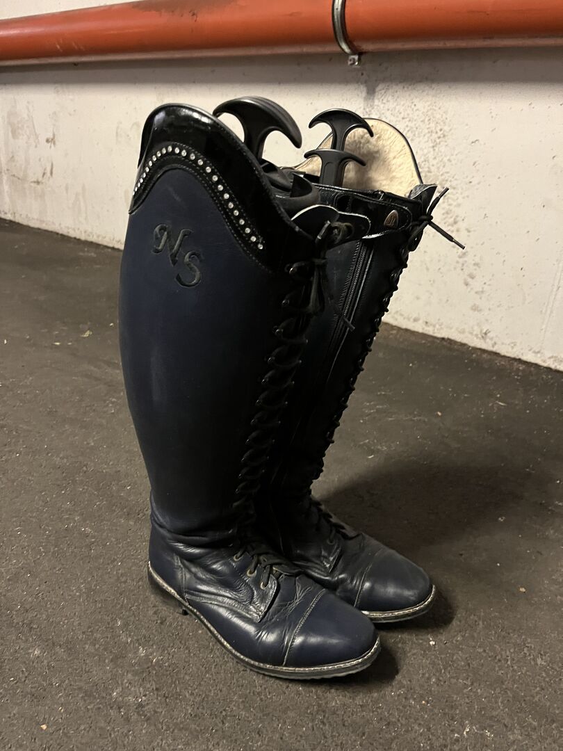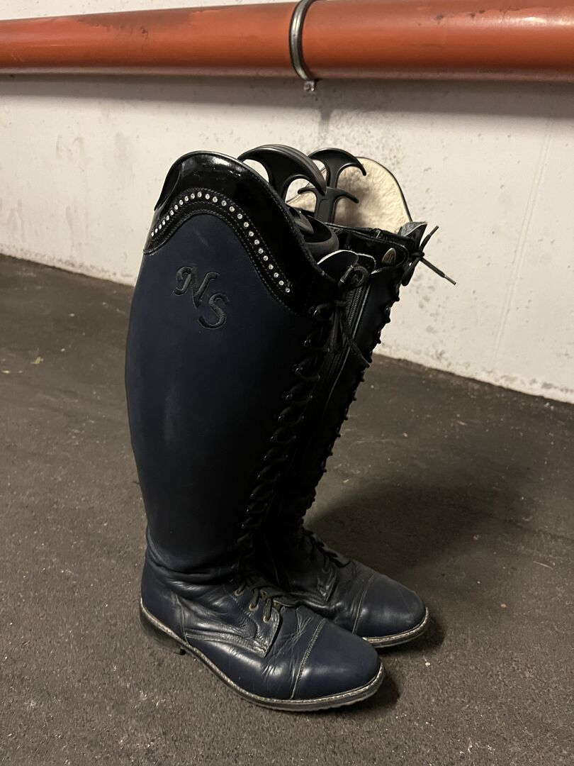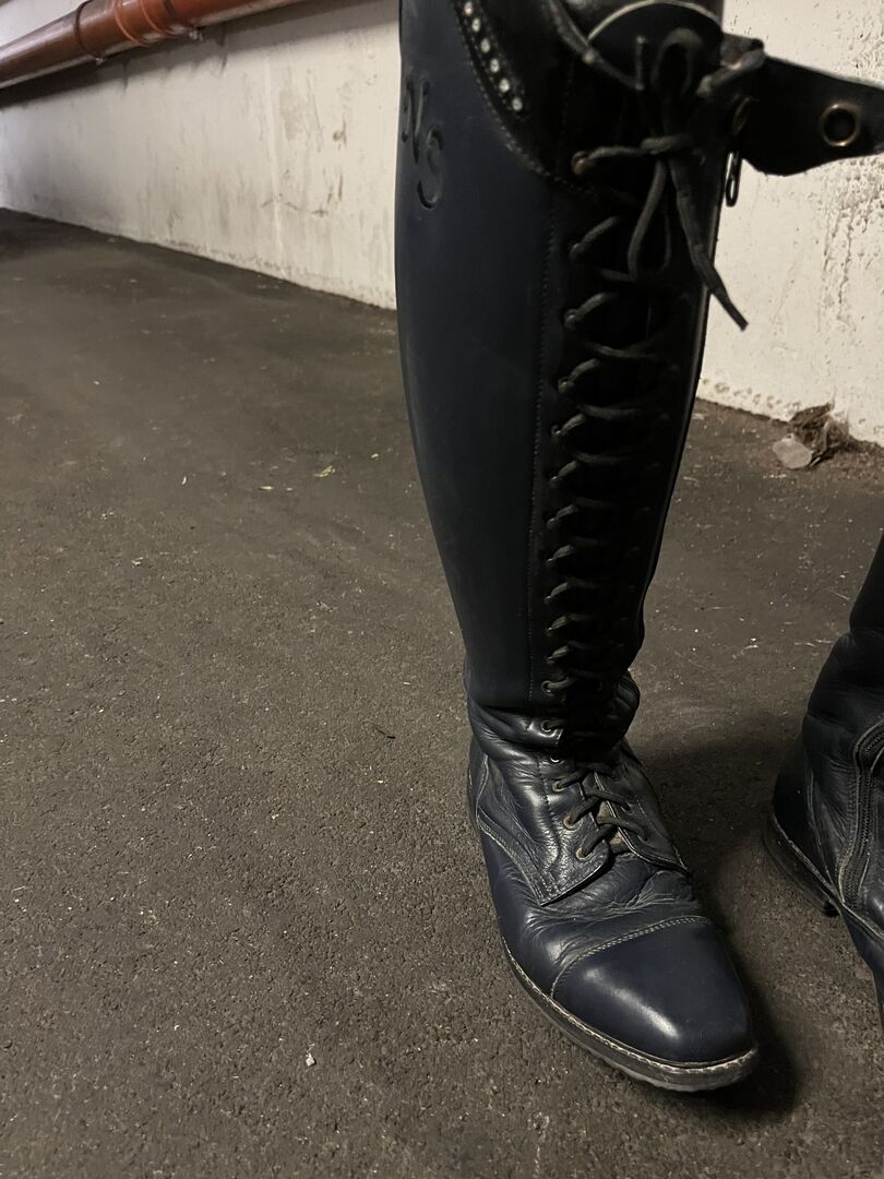 Vinterridstövlar i storlek 39 - Säljer mina vinterstövlar med lammskinnsfoder eftersom min fot har förändrats och jag behöver skaffa nya. Hade dem bara på en säsong och sedan bara i 1 månad, så bara på vintern. De är i toppskick och har alltid skötts och rengjorts. De är snörstövlar med en svart rosett med glitter.