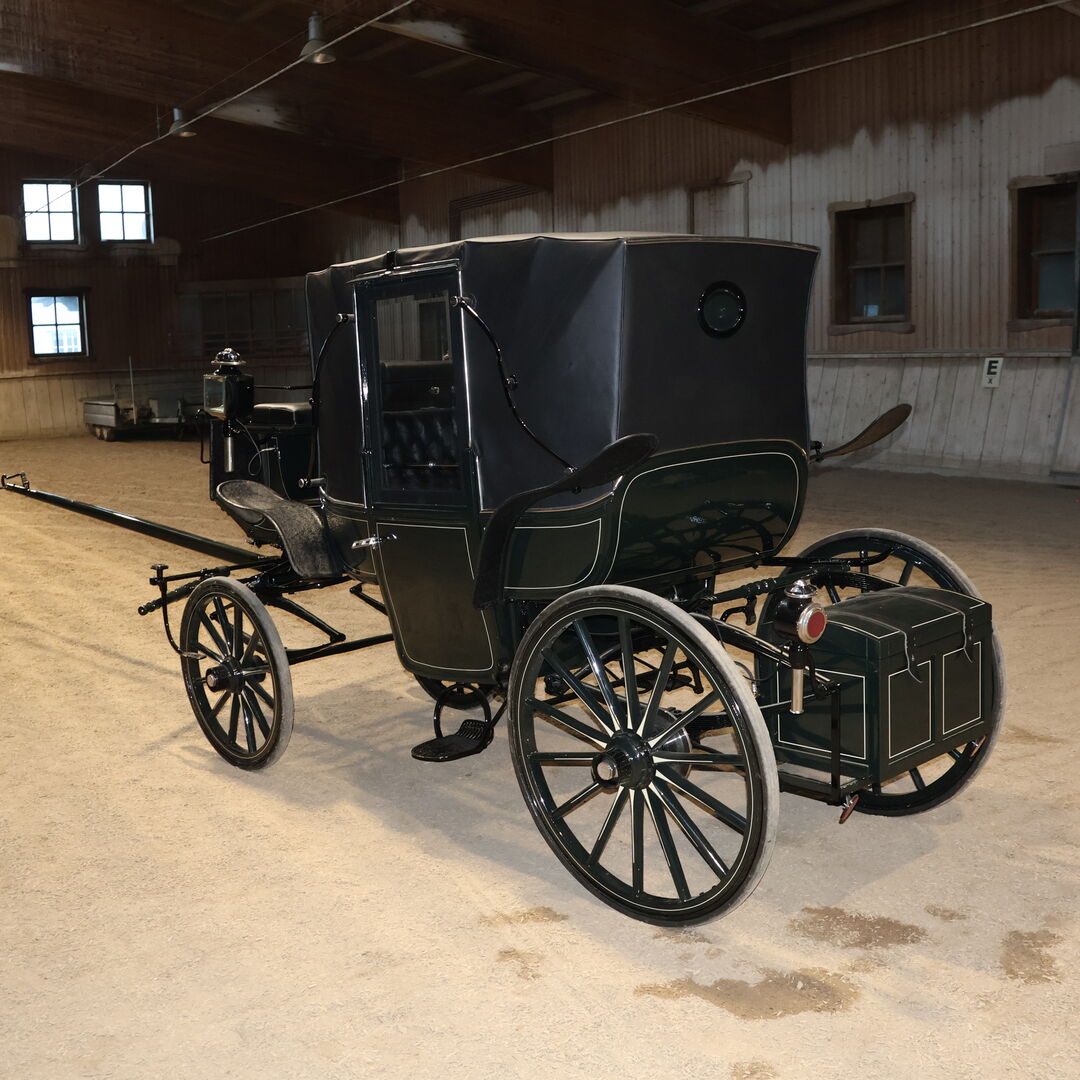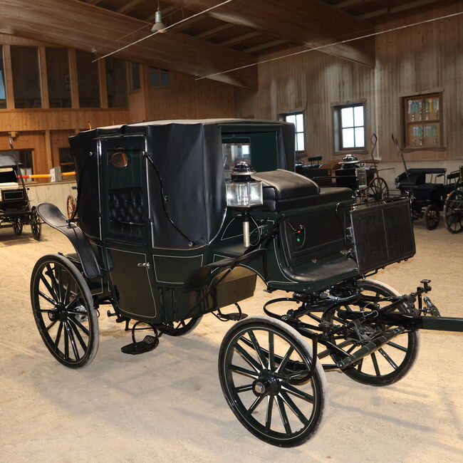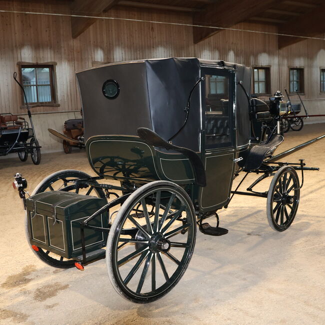Varumärke: / Typ av vagn: Vis a Vis Hästtyp: Stora hästar Typ av vagn: Upp till 4-hästars vagn Skick: Nyskick Restaurering: Vagnen restaurerades för några år sedan för ca. 10.000 € och har inte körts sedan dess Redo att köra: Ja, ekipaget är fullt trafikdugligt och körs utan problem Färg: Mörkgrön med vita accenter Omfattning av leverans: Se bilder