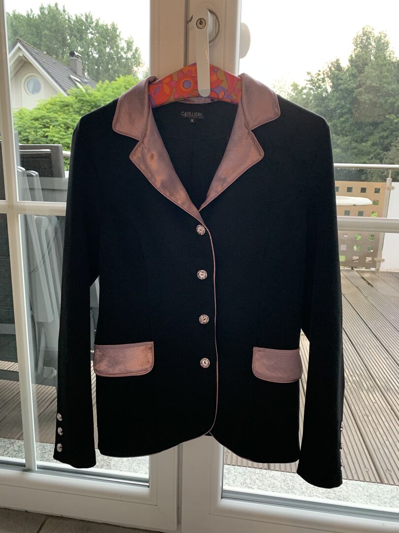 Visa jacka Cavalliera Mauve Sensation storlek L - Säljer min svart/rosa showjacka från Cavalliera, modell Mauve Sensation i storlek L.