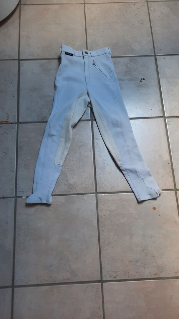 Vita knäbyxor för barn - Vita knäbyxor för barn (med mönster av corduroy) Ungefär storlek 134 (går liten och tight) Kardborreknäppning i benen Bältesöglor