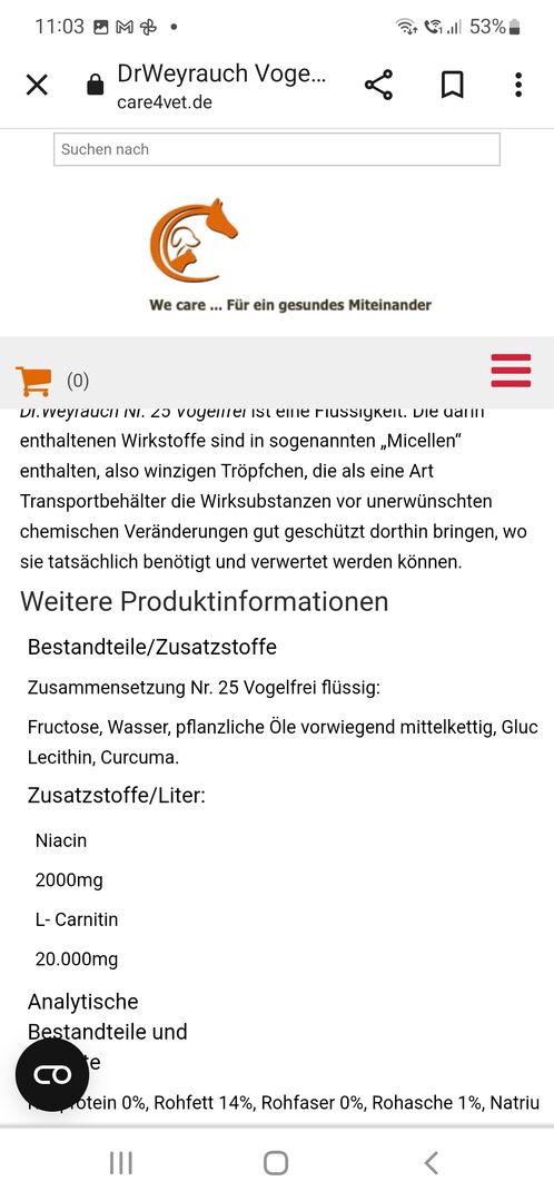 Jag säljer en flaska Vogelfrei från företaget Dr. Weyrauch. Flaskan är fortfarande tre fjärdedelar full. Det är en 500 ml flaska. Jag skulle lägga till en liten present till den.