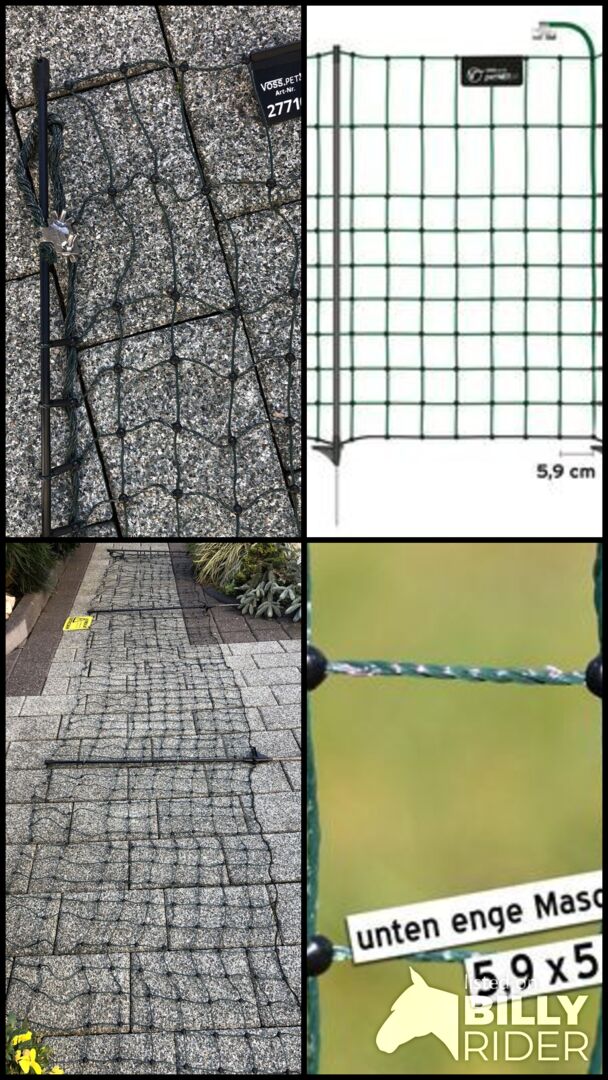 VOSS.pet petNET, elstängsel för små djur - VOSS.pet petNET , Elektroniskt nätstängsel för små djur för hundar, valpar, kattstängsel, kaniner etc. Kompakt längd 12 meter, 65 cm högt elektroniskt nät. Plusspänningsanordning. 9 stakar i grön färg. Pålarna kan sparkas ner i marken med foten. Robust, stabil spets för säkert fotfäste även på mjukt underlag. Metallspetsen är anodiserad och därmed skyddad mot korrosion. Tack vare den grangröna färgen smälter den mycket väl in i omgivningen. Smala maskor i den nedre delen. Lämplig för att hålla ute små djur som valpar, små hundar, katter, kaniner och andra smådjur. För att avvisa vilda djur som mårdhundar, tvättbjörnar, rävar och vildsvin. För detta ändamål : VOSS.pet "fenci M09" - 230V elstängselanordning (spänningsanordning) - för hund- och kattstängsel plus jordanslutningskabel, Kraftfull anordning för hus, gård och trädgård med moderna duo lysdioder, spänning 9 500 volt - effekt 0,8 joule. Komplett uppsättning för optimal jordning upp till 1,8 Joule. Endast självuppsamling !