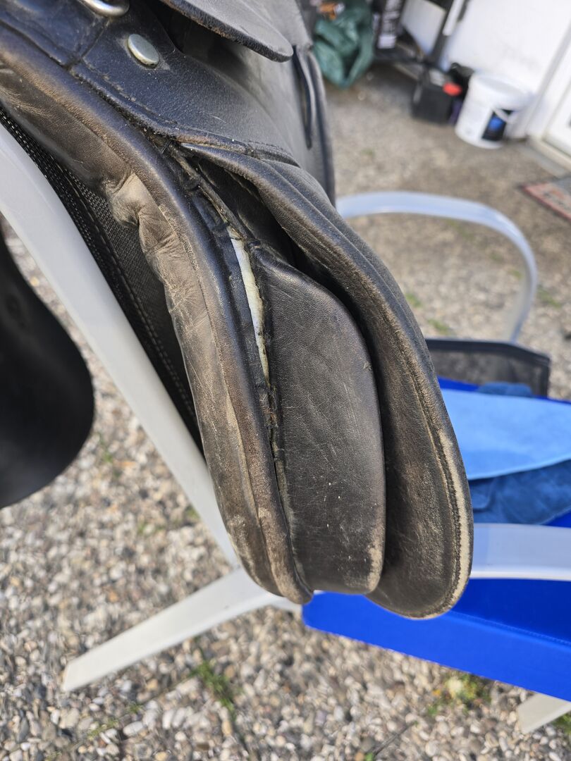 VS 17 tum för inridning eller för trähästar - Hej, min sadelmakare säger att den fortfarande är bra, behöver bara sys.