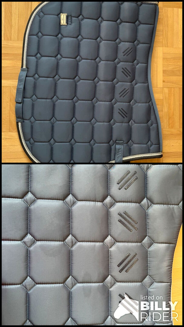 VS Saddle Pad - Sadelpadden har bara varit på hästen några få gånger, så den är i gott skick. Sadelpadden är dock otvättad, vilket är anledningen till att ett svettmärke syns och att det fortfarande finns hästhår på sadelpadden. Dessa små fläckar bör dock försvinna när de tvättas. Sadelunderlägget kostar 54,90 € som nytt