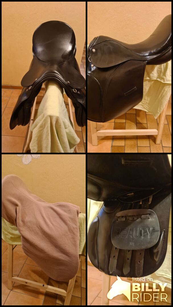 VS-sadel - Vacker, lite använd VS-sadel av märket "BEAUTY". I svart 17,5 tum. Tillbehör: * Stigbyglar i rostfritt stål i storlek 12 *Showmaster stigbyglar i storlek 155 *Felix Bühler fleece-sadelöverdrag i rosa