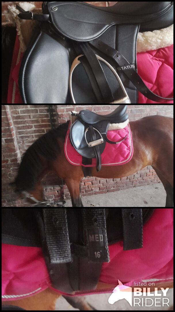 vs sadel lätt 16-tums ponny - här erbjuder vi en status vs ponnysadel. eftersom den är mycket lätt är den idealisk för ponnyer. den monterades på ett 123 cm långt ponnysto