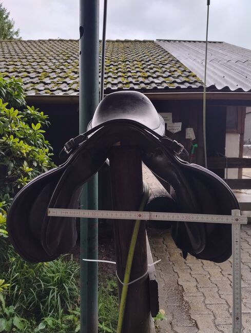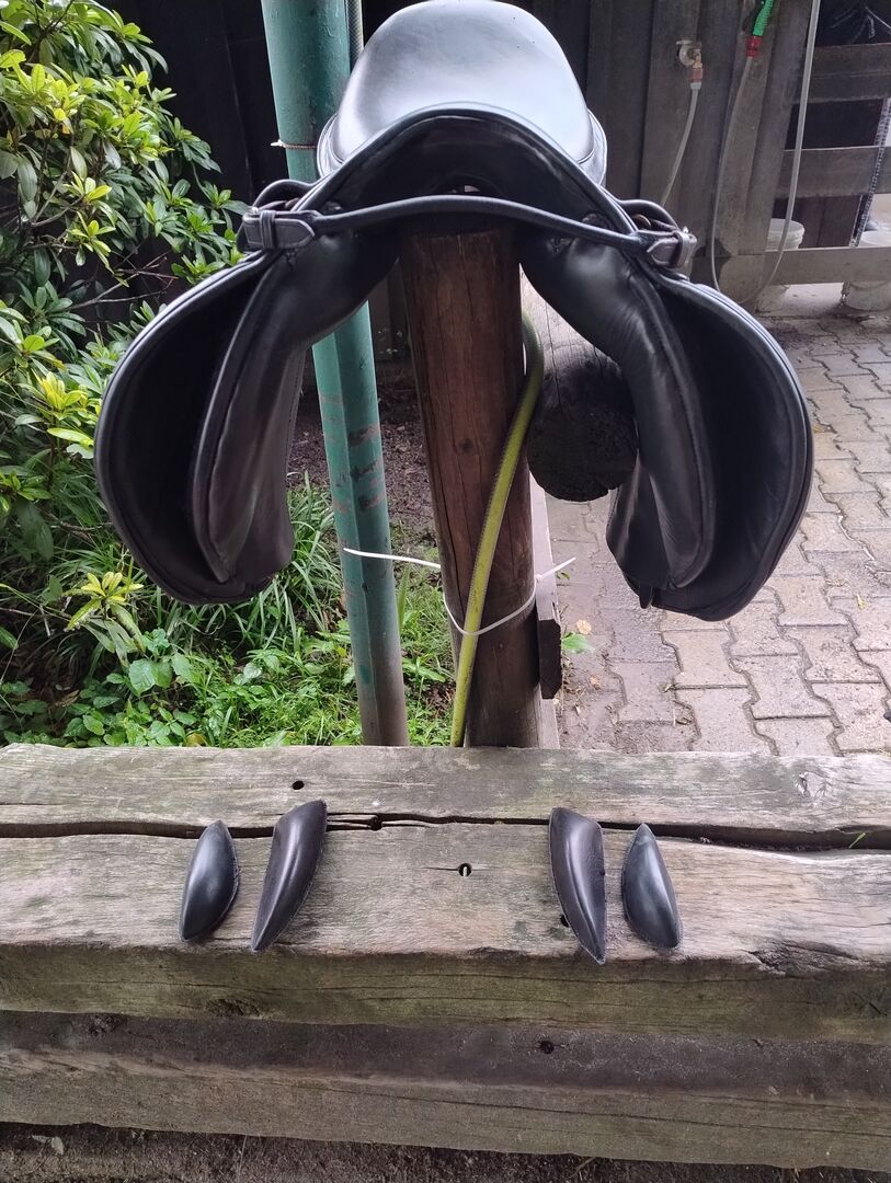 VSS-sadel Felix Bühler - Till salu är min älskade eventing sadel av märket Felix Bühler i 18 tums sitsstorlek och platt sits. Sadeln är justerbar i kammaren. Du kan enkelt göra denna justering själv med hjälp av det medföljande verktyget. Justeringen görs med hjälp av tre skruvar. Den enkla justeringen gör sadeln perfekt för unga hästar, hästar i rehabiliterings- eller konvalescensfasen och i allmänhet helt enkelt för alla hästar som (bör) utvecklas fysiskt. Sadeln är utrustad med camberfjädrar. Efter att ha testat dem själv kan jag säga att de fungerar perfekt - knärullarna är fästa med kardborreband och kan därför anpassas individuellt till ryttaren eller tas bort helt. Sadeln köptes för inkörning och fungerade perfekt för detta ändamål. Eftersom min häst är fullvuxen och i avancerad träning kan vår träningspartner nu gå vidare och göra ett bra jobb för ett annat lag ❤️ Klassiska stigbyglar och stigläder ingår. Vid behov en enkel lång sadelgjord och ett sadelunderlägg så att vi kan börja träna direkt Sadelgjorden var för lång för oss. Sadeln togs till en sadelmakare för att reparera en söm som hade lossnat och för att få den att se lika fin ut som när jag köpte den svärtades den om med läderfärg. Bortsett från mindre nötningsskador på sadelgjorden (eftersom min häst en gång hade tryckt bort sadeln från bommen) har sadeln inga andra skador. Jag säger det som det är, om du köper den för träning av unga hästar kommer det inte att skada så mycket till det här priset som det gjorde för mig strax efter att jag köpte den nya Sadeln har alltid förvarats och vårdats på en torr plats. Måtten kan ses på bilderna. Om du har några frågor, vänligen kontakta mig. Jag är beredd att skicka sadeln väl packad och vadderad och naturligtvis försäkrad.