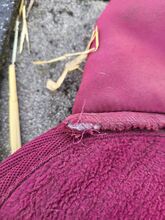 Jag älskade att bära den och den har nu blivit för liten. Den har 2 små hål på ena sidan som knappt märks. Dessutom är sömmarna på insidan av kragen inte längre helt nya och har blivit repade eller upprivna på några ställen. Alla defekter kan ses på bilderna. Filten säljs otvättad.