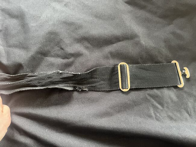Den är i mycket gott skick förutom en liten fransig del på magremmen.