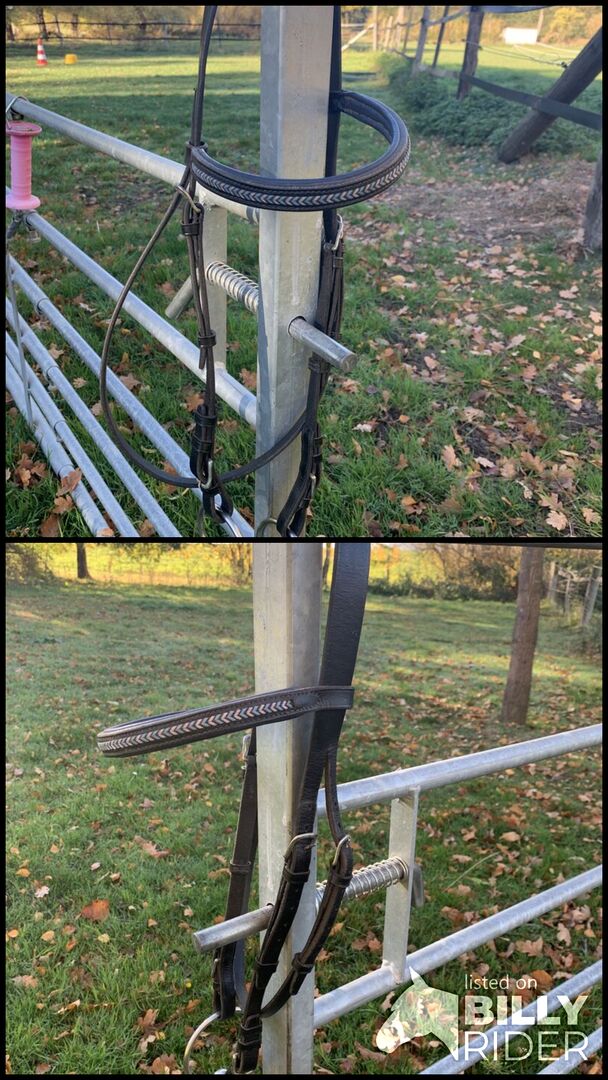 Warmblood Snaffle med bit - Träsket har ingen nosband och inga tyglar. Biten är dubbelbruten 14,5 cm och 16 mm