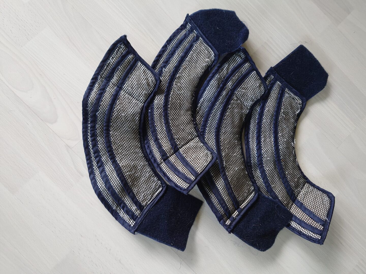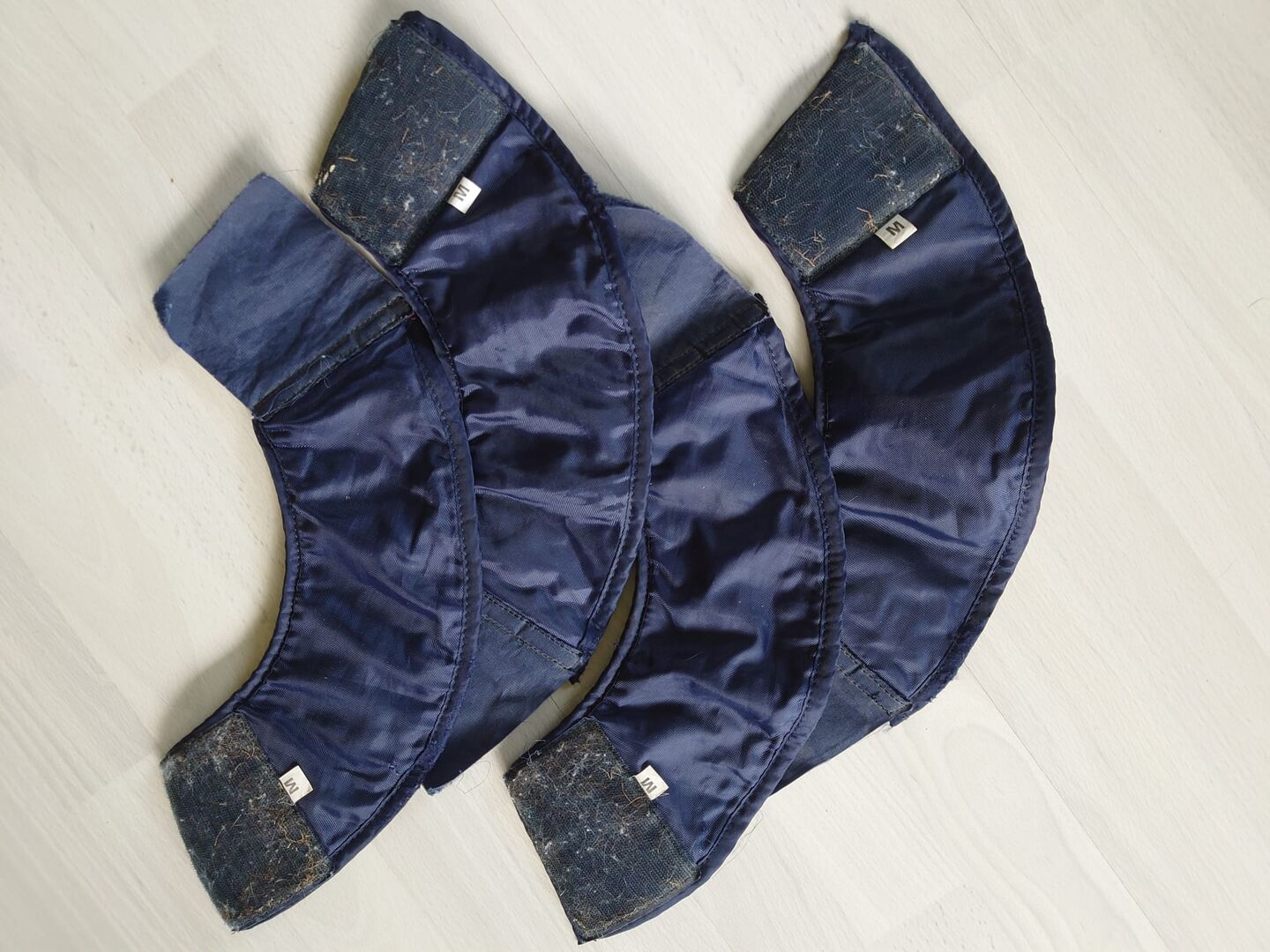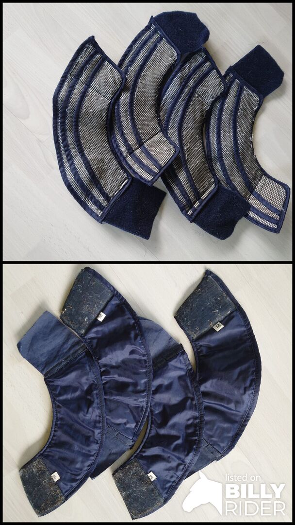 Water Boot hovstövlar, storlek M - 4x Water Boot hovstövlar, för att förhindra att hästens hovar torkar ut på sommaren. Storlek M. Tecken på slitage, jag kan inte längre få kardborrebandet rent. Håller dock fortfarande fast! Inga sprickor eller skador.