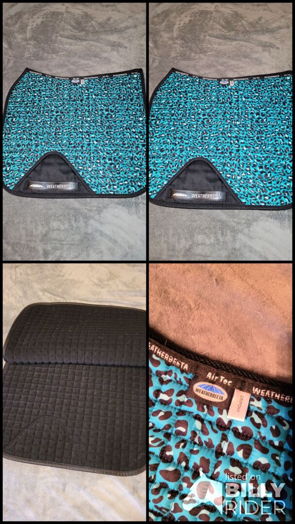 Weatherbeeta DR Schabrake Leo Turkos - Säljes som nytt dressyrschabrak i ponnystorlek från Weatherbeeta i leo turkos. Den har varit på hästen en gång och är nytvättad. Privat försäljning därför ingen retur, garanti eller garanti