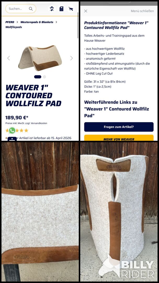 Hi Jasmin, I am interested in your ad 'Weaver Contoured Filzpad Western 31x32 Zoll / Weaver Contoured Westernpad Filz 31x32'. Please contact me! 😊