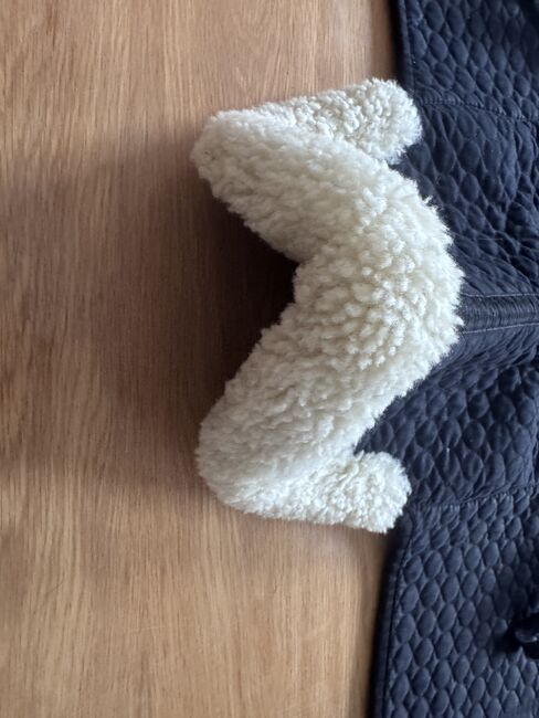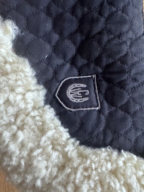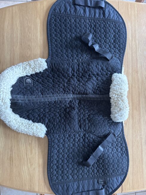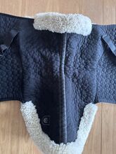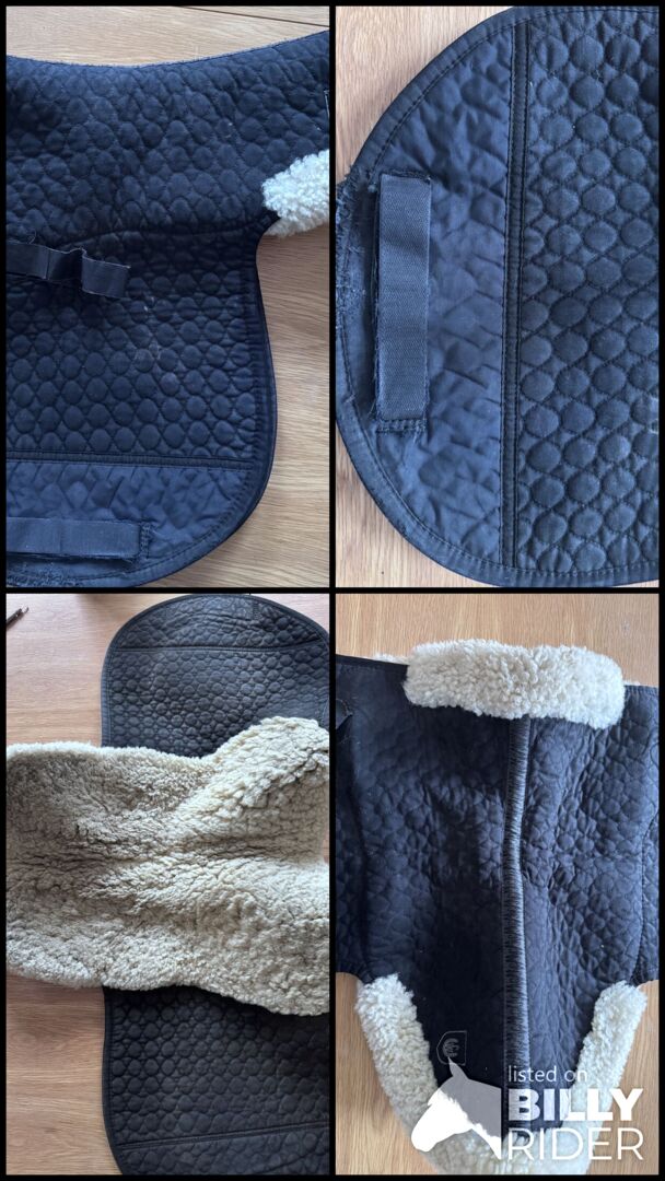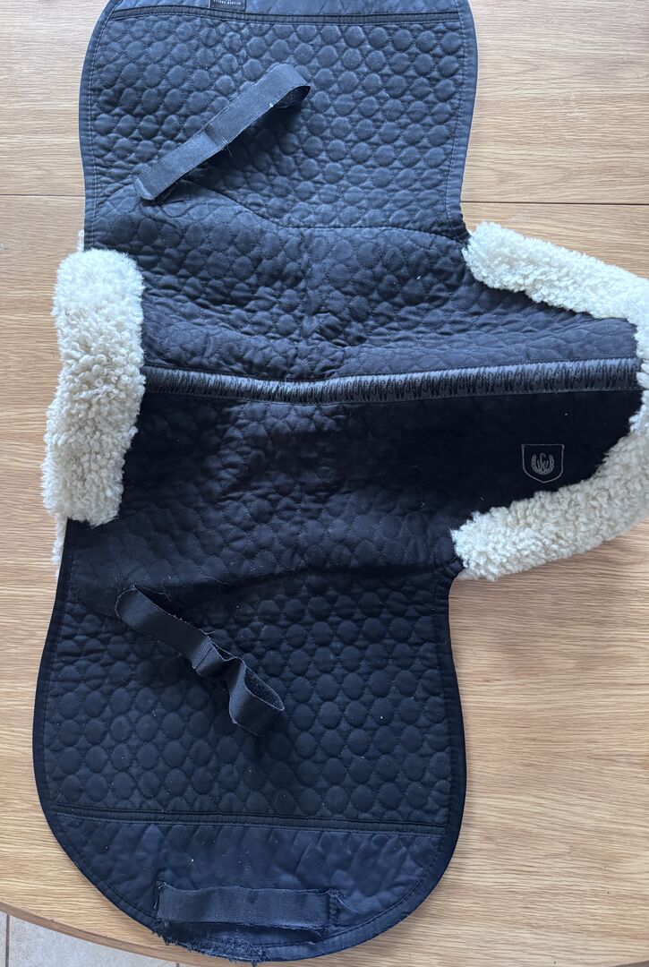 Ullhöjden är ca 30 mm för optimal stoppning. Ovansidan är tillverkad av vår speciella sadelduk. Fästs med kardborreband. Kan maskintvättas med lammskinnstvättmedel och torktumlas.