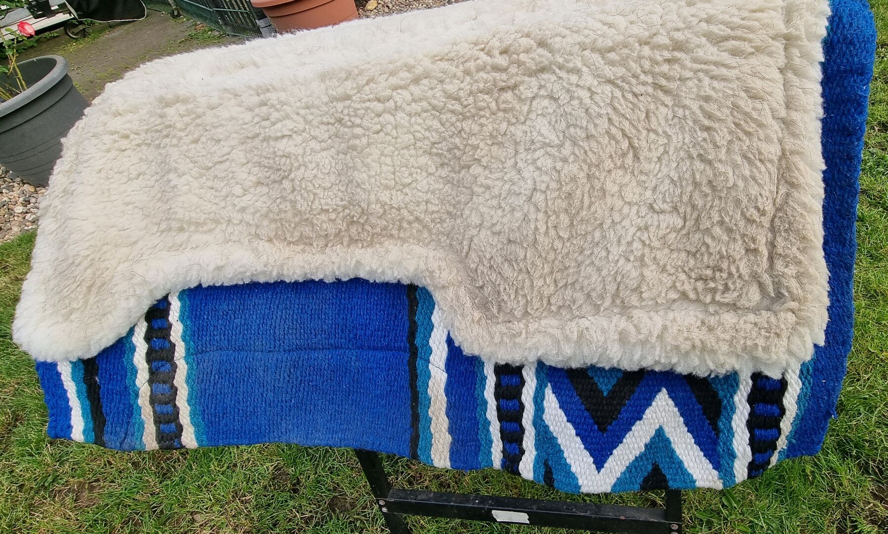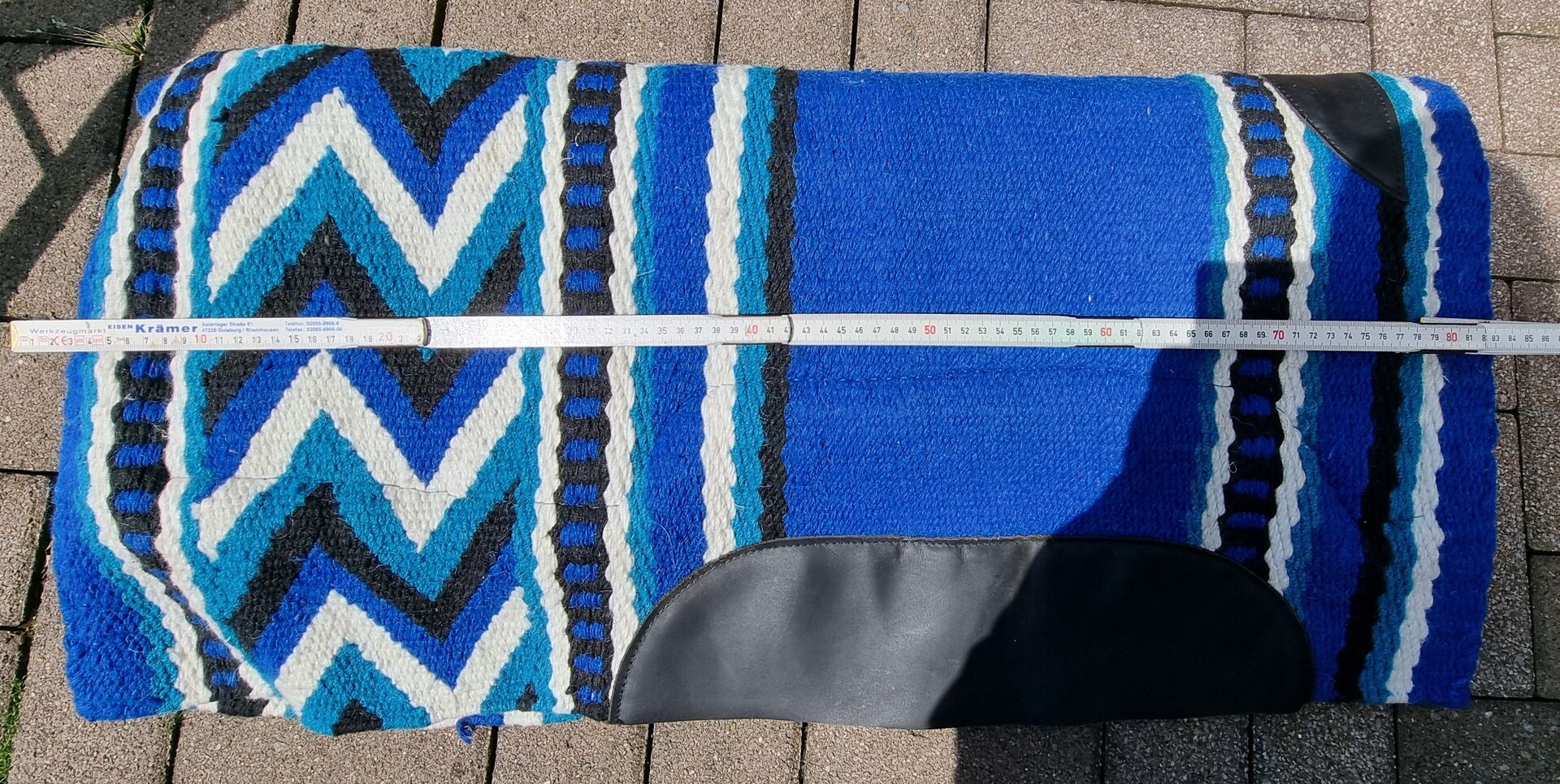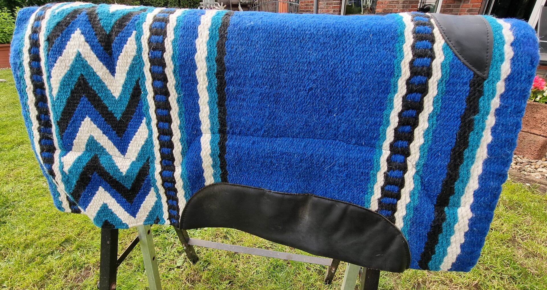 Säljer en sällan använd western pad i en tung, bra kvalitet i olika nyanser av blått med vitt & svart.