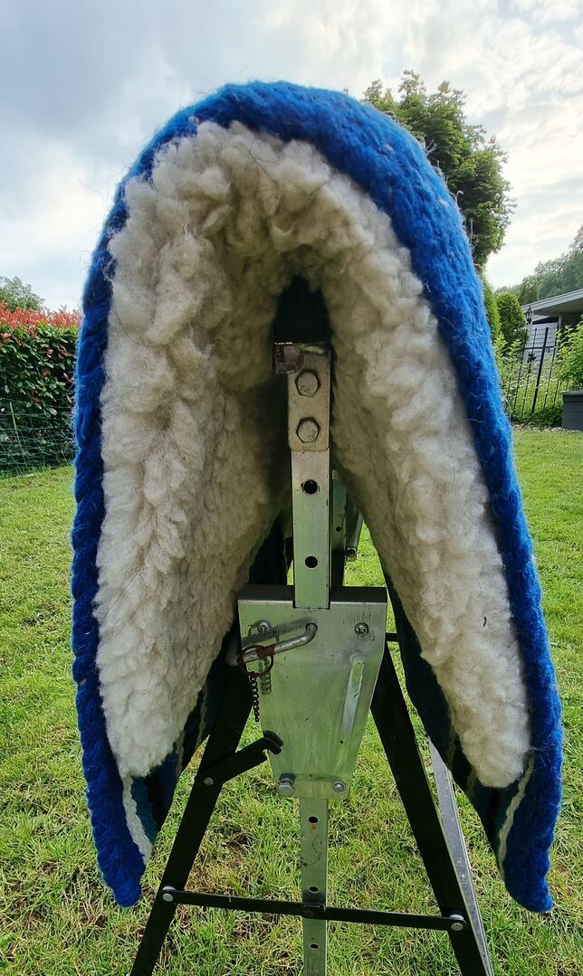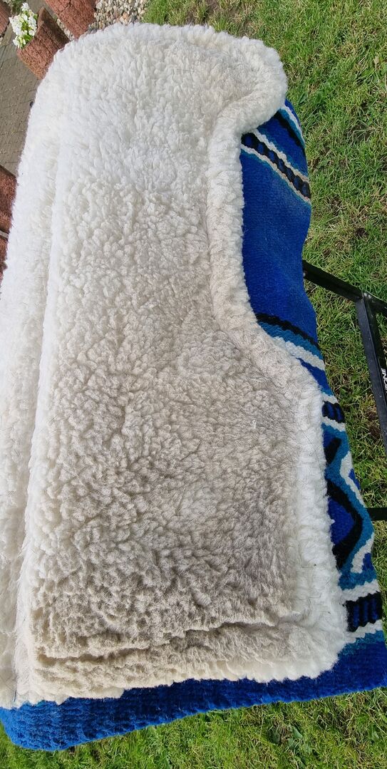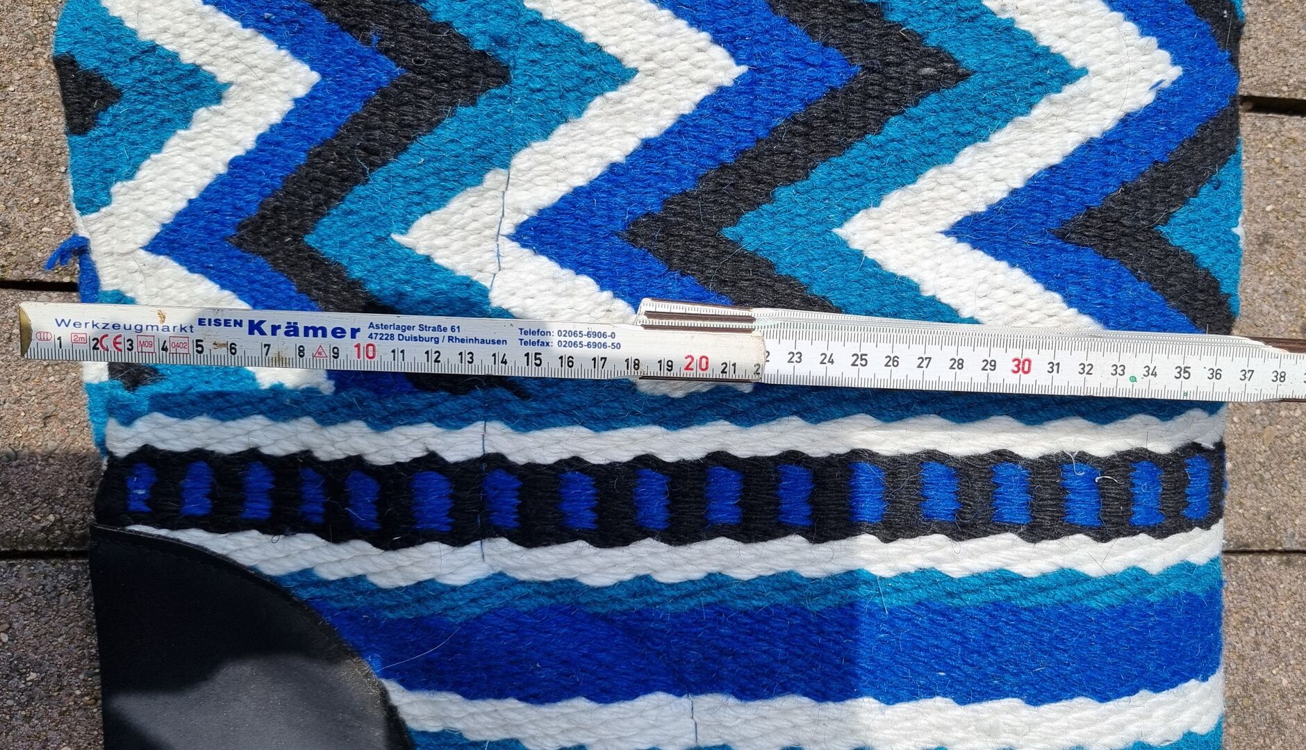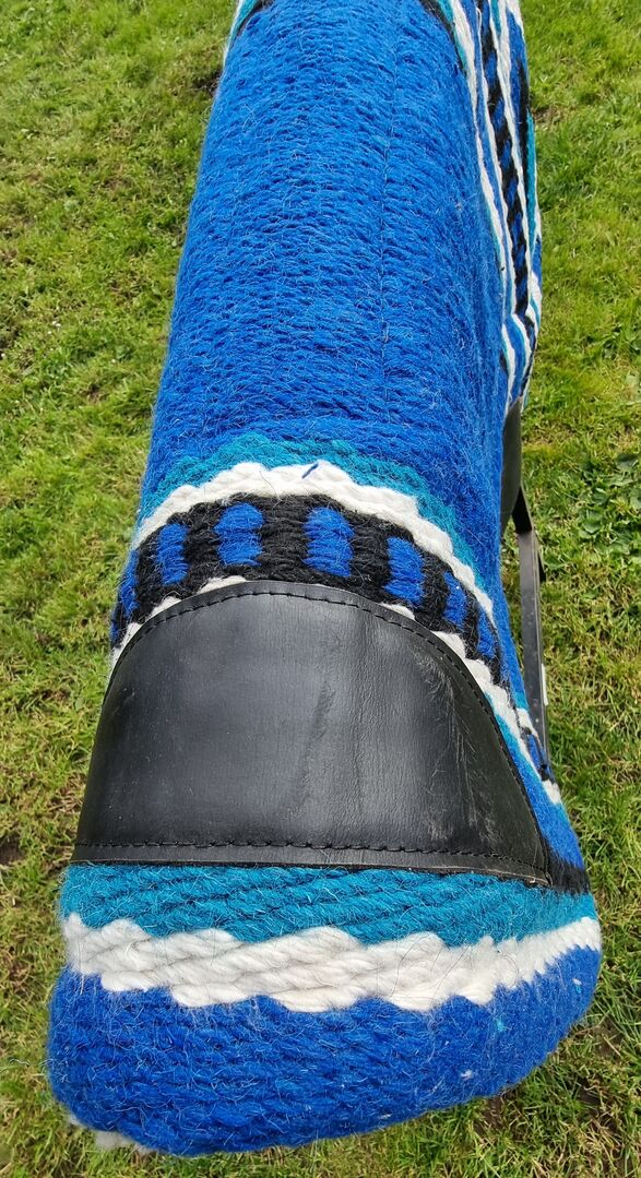 Säljer en sällan använd western pad i en tung, bra kvalitet i olika nyanser av blått med vitt & svart.