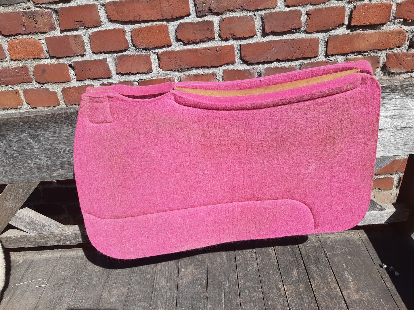 Western pad, barn pad/ullfilt, rosa ny - Superfin pad till salu. Dåligt köp...alldeles för tjock under min dressyrsadel...tyvärr. Köpte för en vecka sedan för 180 EUR från Westernsattelscheune. Användes i 2 timmar, 73 cm lång. Hämtning i Dortmund eller möjligen Krefeld