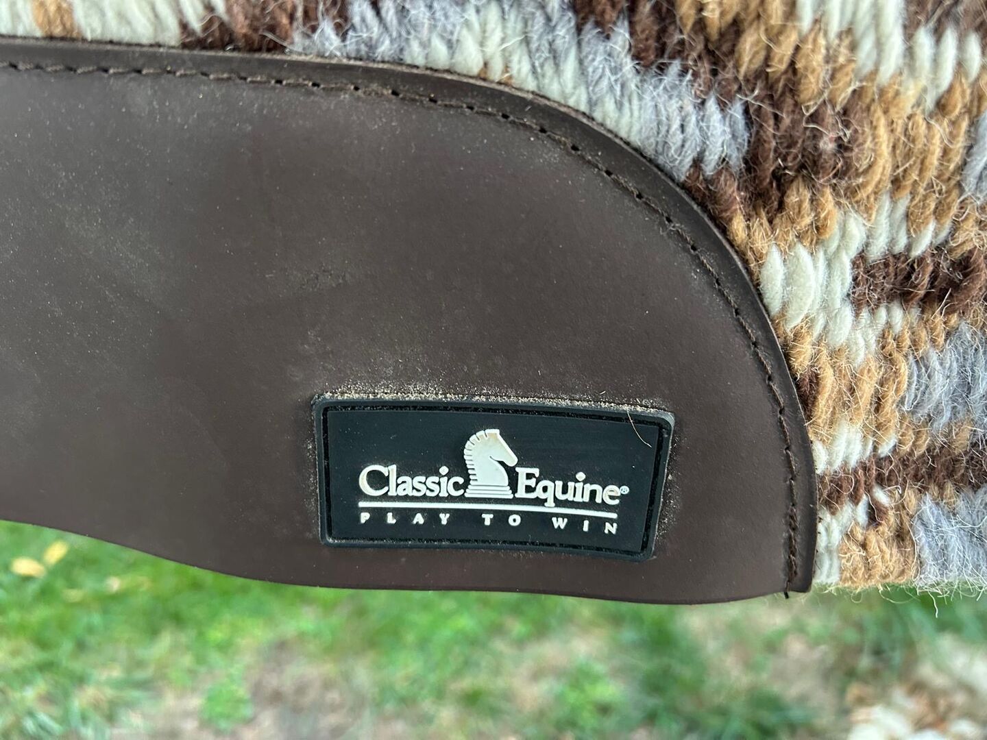Western pad Classic Equine Sensorflex - Ny westernpad 81x86cm i creme/brun, utskuren för fenderposition, rakt skuren baktill, köpt till mindre QH, aldrig legat på hästen, så ny, nypris var ca 130€.