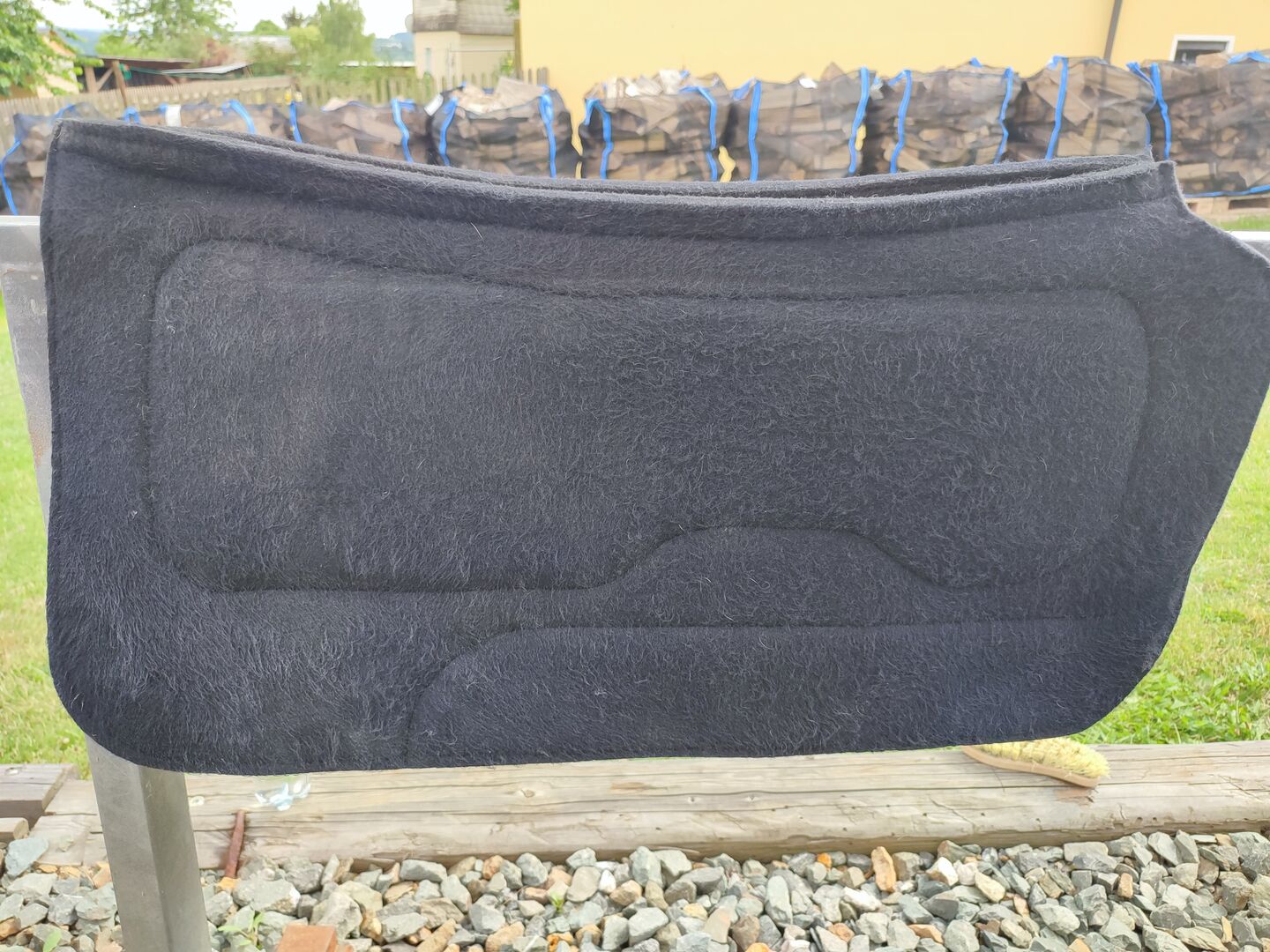 Western Pad Merino Wool Felt - med stoppning av minnesskum. Jag köpte kudden från Silverado i mars i år, fakturan är fortfarande tillgänglig. På grund av en ändring till en mindre sadel passar den inte längre. Jag har borstat den mycket väl, se bilderna. Enligt tillverkaren har dynan följande egenskaper och mått - anatomiskt formad - Ovansida ca 5 mm syntetisk filt - undersidan ca 8 mm filt av merinoull - Extra stoppning i området för sadelns kontaktyta av följande material - ca 10 mm minnesskum - svettabsorberande, -chockdämpande och tryckfördelande - Robust läderklädsel Storlek: 31" x 32" (77,5 x 80 cm) Var rättvis när du förhandlar. Faktura finns tillgänglig