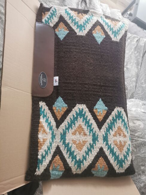 Western Pad Sadelkudde CSF - Till salu en western pad av märket Csf i mycket bra skick. Den har ett Aztec-mönster och lammskinn på undersidan. Vacker pad av hög kvalitet som knappt har använts.