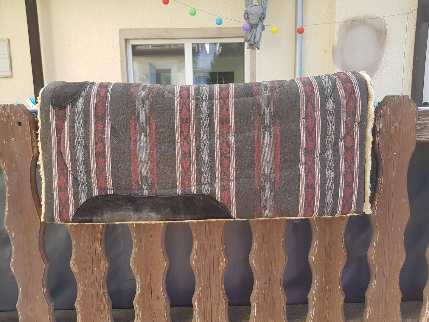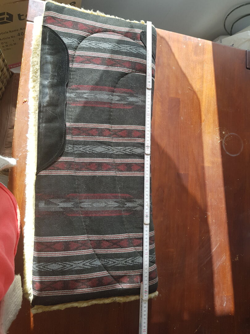 Western Pad Svart Röd - Använd västerländsk kudde i färg svart röd med päls