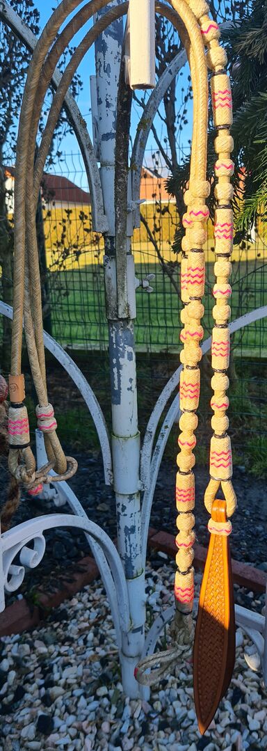 Western Romal Tyglar Tyglar - Mycket fina rosa svarta dekorerade Rohaut Romal tyglar slät flätad med högkvalitativa stansade läderändar.