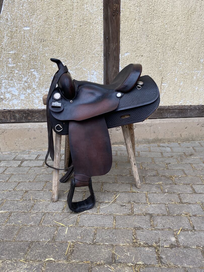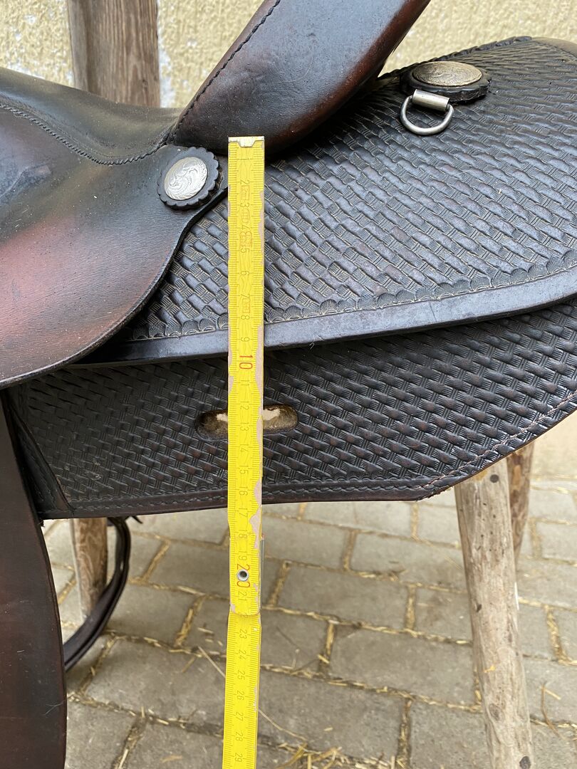 Western Saddle Big Horn extra kort - Jag säljer min begagnade western-sadel från Big Horn med serienummer 1568. Den har få tecken på användning och kortades extra av sadelmakaren och har en total längd på 60 cm. Alla mått kan ses på bilderna, om du har några frågor är det bara att skicka mig ett meddelande. Priset är VB