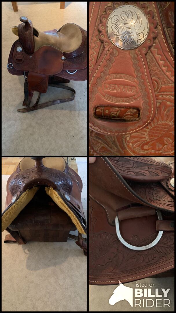 Western Saddle Denver - Jag säljer min western sadel från Denver. Den är i bra begagnat skick. Den sitter mycket bra. Ett vackert blickfång på hästen. Fantastisk färg.