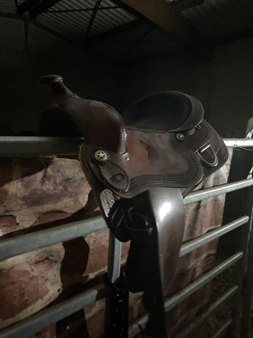 Western saddle Denver Colorado - På grund av ett dåligt köp säljer jag min lilla begagnade och helt nya västerländska sadel Colorado Denver med 16 säte och sadelhud.