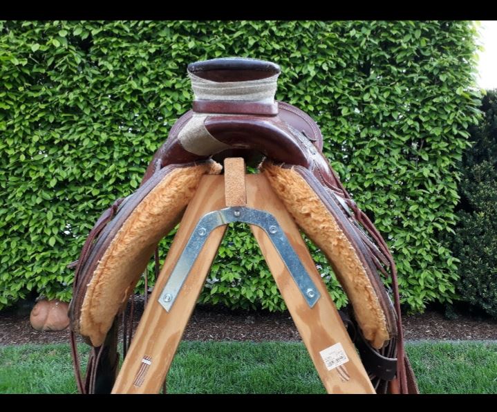 Western Saddle Wade Saddle Buckaroo Vaquero - Wade-sadel från Lavilla till salu! Superbekvämt och du sitter nära hästen. Det finns lätta tecken på användning. Information från sadelmakeriet Le Selle Italiane: - Amerikanskt ringläder av högsta kvalitet - Hermann Oak-läder. - Equifit-sadelträd för bästa möjliga stabilitet - Vackra blommiga märken - Stigbyglarna är redan utställda - Kort sadel därför lämplig även för korta hästar För mer information, se bilderna eller PN. Det ursprungliga priset för denna Lavilla var 3400€. Provning på plats och frakt möjlig! Privat försäljning, ingen retur!