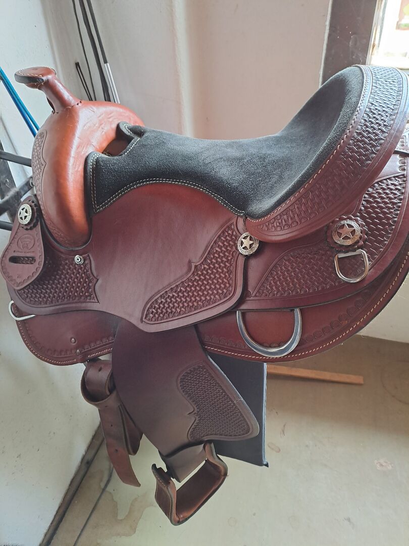 Western Saddle Wildhorn 16 tum - Nytt pris! Till salu lite begagnad westernsadel i mycket bra skick, då min unghäst har vuxit ur sadeln. Sitsstorlek 16 tum. Passar på en häst med 1,47 stm och rak rygg, smal bog. Sadelgjordar, fendrar och stigbyglar har normala tecken på slitage. Som ryttare bör du vara minst 1,65 meter lång för att fenderlängden ska passa. Sadelgjorden med en längd på 60 cm säljs separat. Platsen är Dresden. Ingen delbetalning. Kontant betalning vid montering på din häst. Jag kommer till Dresden plus 30 km radie. Om du är intresserad, vänligen PN.