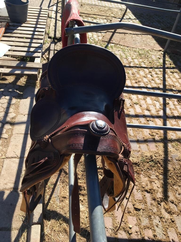 Western-sadel - Begagnad western-sadel, super skick, väl underhållen på grund av byte till trekking-sadel. Jämnt vadderad, används på en smal ponny, inte lämplig för en mycket kort sadelposition.